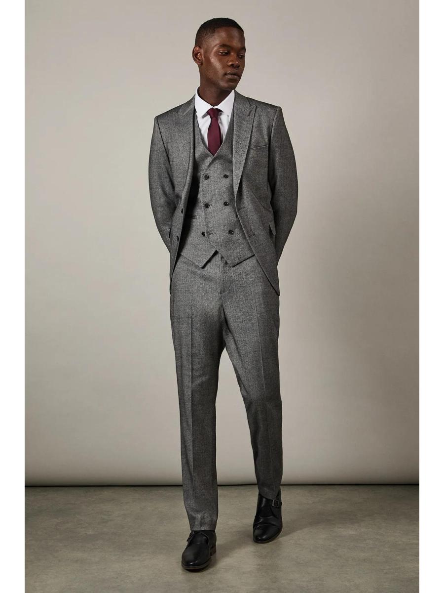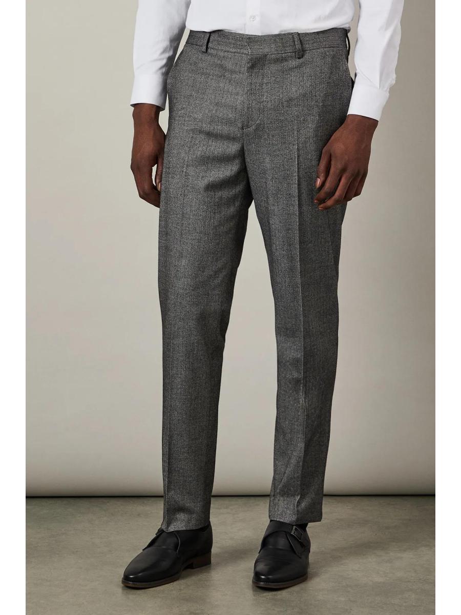 \u003cdiv\u003e \u003cul\u003e \u003cli\u003eDistinctive herringbone pattern adds subtle texture and visual interest\u003c/li\u003e \u003cli\u003eSlim fit design offers a contemporary silhouette that flatters the modern man\u003c/li\u003e \u003cli\u003eFlat front styling creates a clean, streamlined appearance\u003c/li\u003e \u003cli\u003eBack pockets with button closure for secure storage\u003c/li\u003e \u003cli\u003eVersatile trousers that pair perfectly with matching suit pieces or as separates\u003c/li\u003e\r\n \u003c/ul\u003e\r\n \u003cp\u003eThese Burton herringbone trousers present the perfect balance of classic tailoring and contemporary style. The slim fit contours to your frame without restricting movement, making them ideal for the gentleman who appreciates refined clothing with practical comfort. Style them as shown with a crisp white shirt for formal occasions, or dress them down with a lightweight jumper for smart-casual events. The versatile design transitions seamlessly from important business meetings to after-work drinks at the pub. Complete the look with polished Oxford shoes for traditional sophistication, or pair with smart Chelsea boots for a modern twist. These trousers serve as a cornerstone piece in any well-curated wardrobe, offering endless styling possibilities throughout the seasons.\u003c/p\u003e \u003c/div\u003e