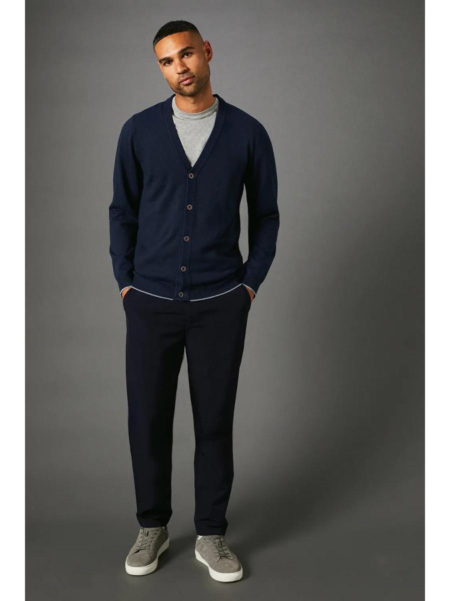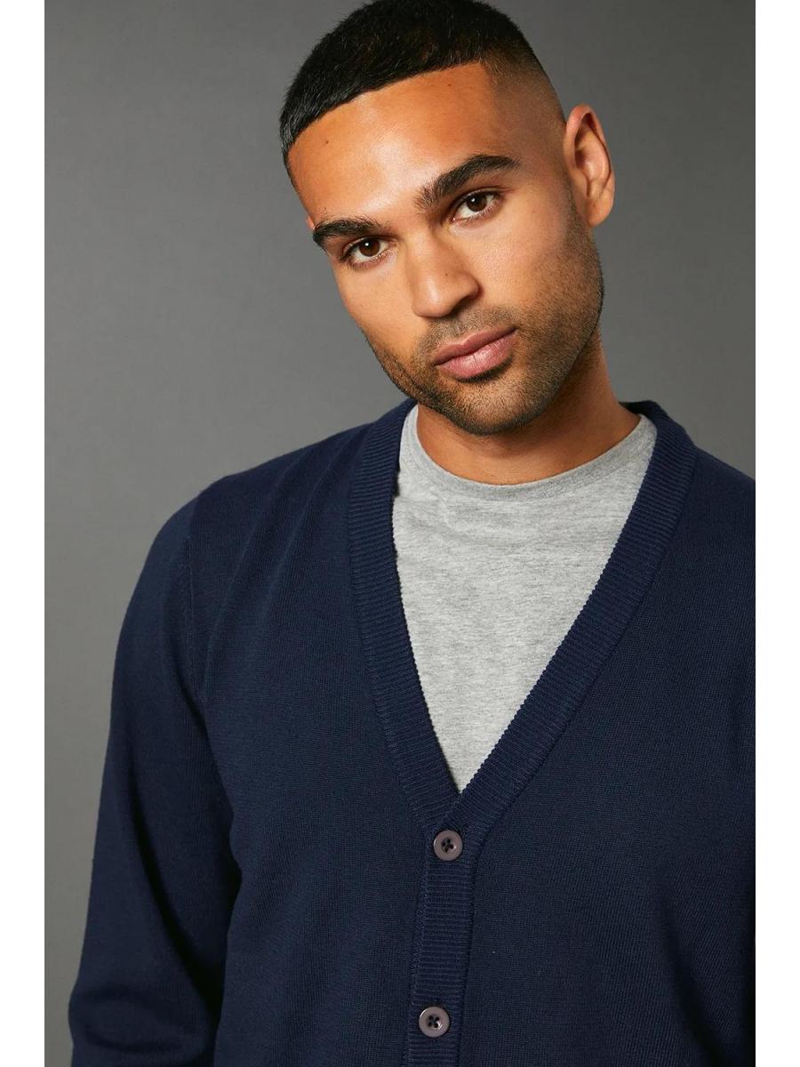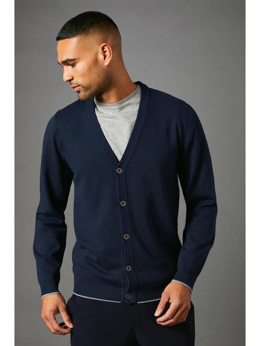 \u003cdiv\u003e\n \u003cul\u003e\n \u003cli\u003eFine gauge knit for a sleek, refined appearance\u003c/li\u003e\n \u003cli\u003eV-neck design with button-through front closure\u003c/li\u003e\n \u003cli\u003eRibbed cuffs and hem for a snug fit\u003c/li\u003e\n \u003cli\u003eVersatile layering piece for year-round wear\u003c/li\u003e\n \u003cli\u003eClassic silhouette suitable for various casual occasions\u003c/li\u003e\n \u003c/ul\u003e\n \u003cp\u003eThis fine gauge knitted cardigan from Burton is a wardrobe essential that combines comfort with style. Perfect for the man who appreciates timeless fashion, it's ideal for casual outings or relaxed evenings at the local pub. Layer it over a crisp white t-shirt and pair with dark wash jeans for a smart-casual look that's effortlessly cool. The cardigan's versatility shines through when worn open over a graphic tee with chinos for a laid-back weekend vibe. For family gatherings or informal dinners, button it up and team with tailored trousers and leather trainers. The fine gauge knit ensures a polished appearance while maintaining comfort, making it a go-to choice for the modern British gent who values both style and practicality in his everyday attire.\u003c/p\u003e\n\u003c/div\u003e