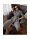 Black Herringbone Notch Collar Wrap Coat