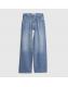 Blue Mid Rise Belted Tapered Jeans