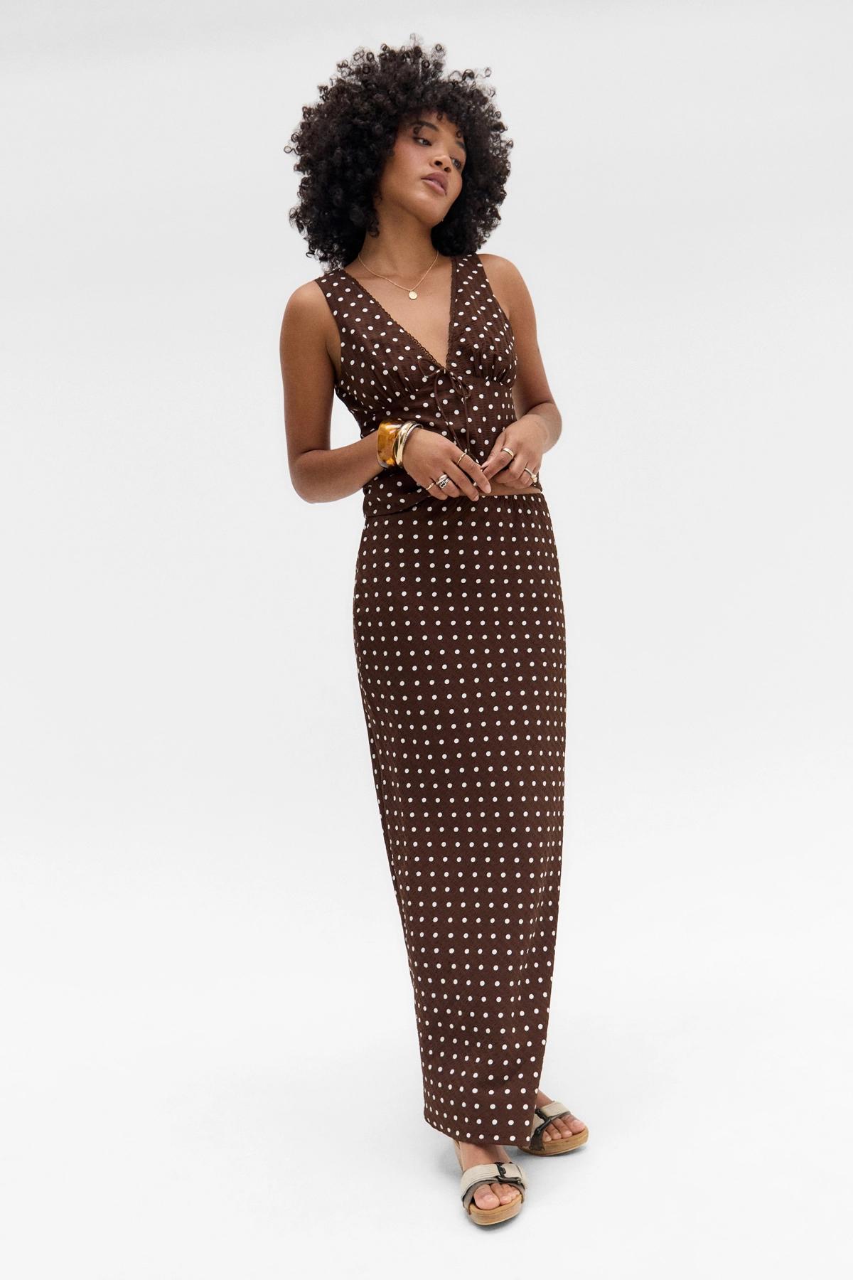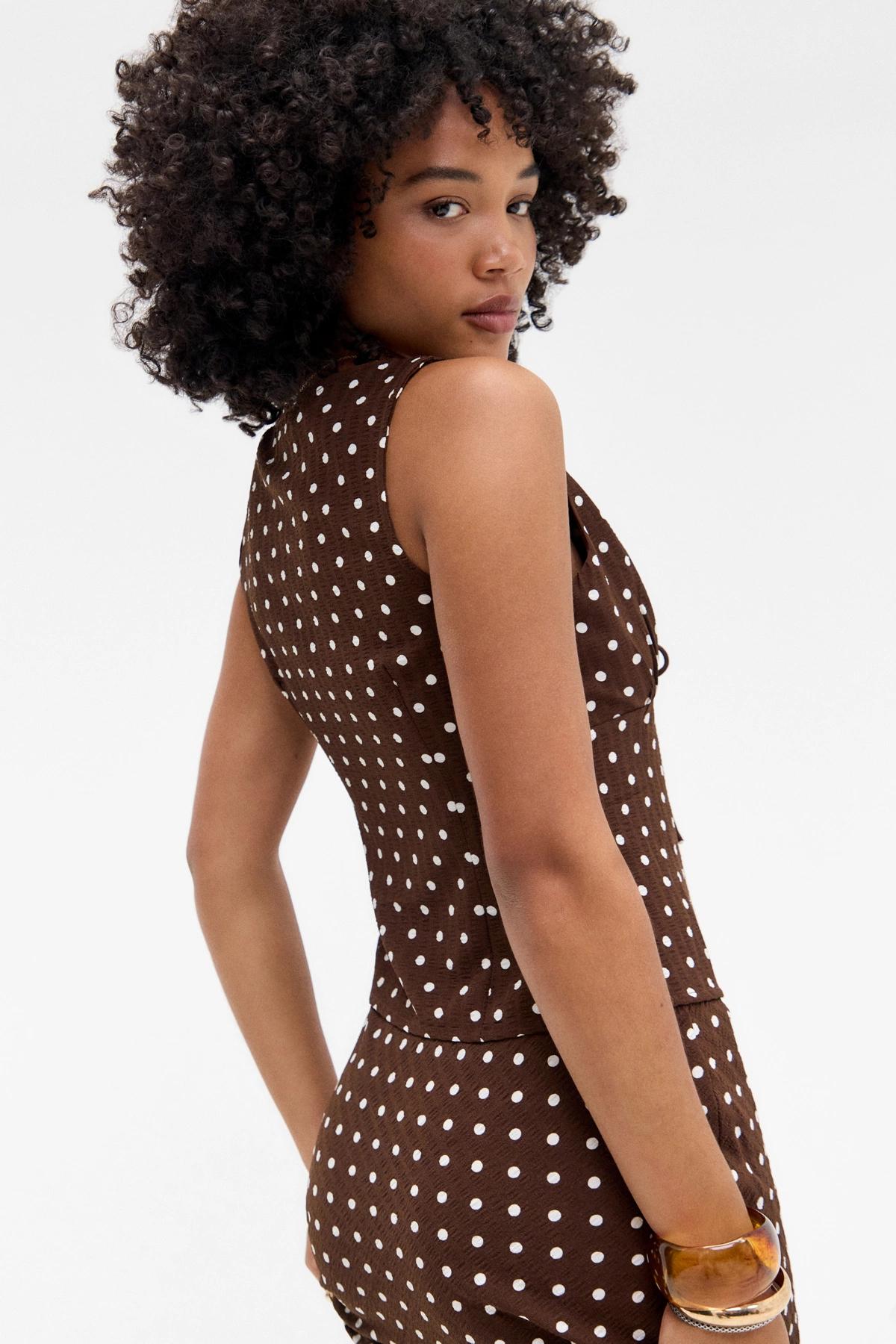 Kiss The Sky Chai Polka Dot Top
