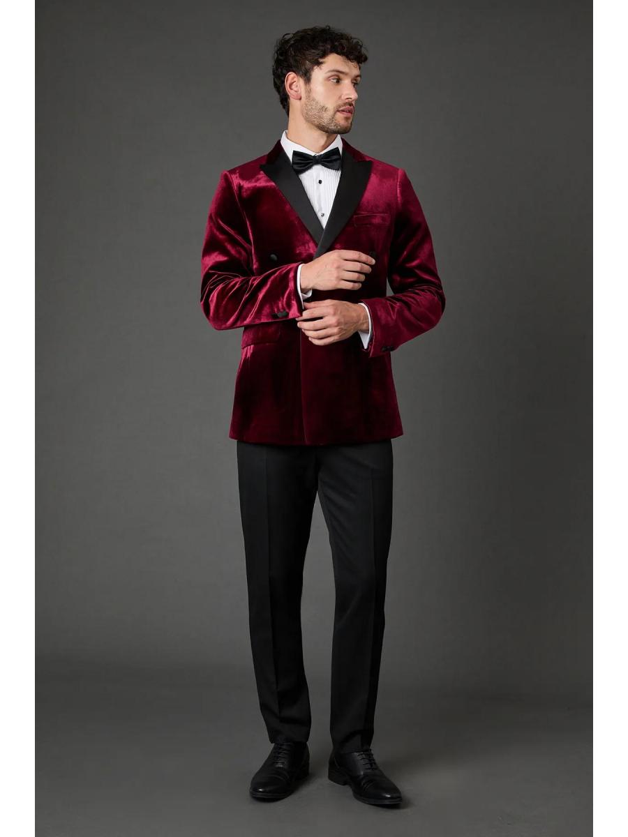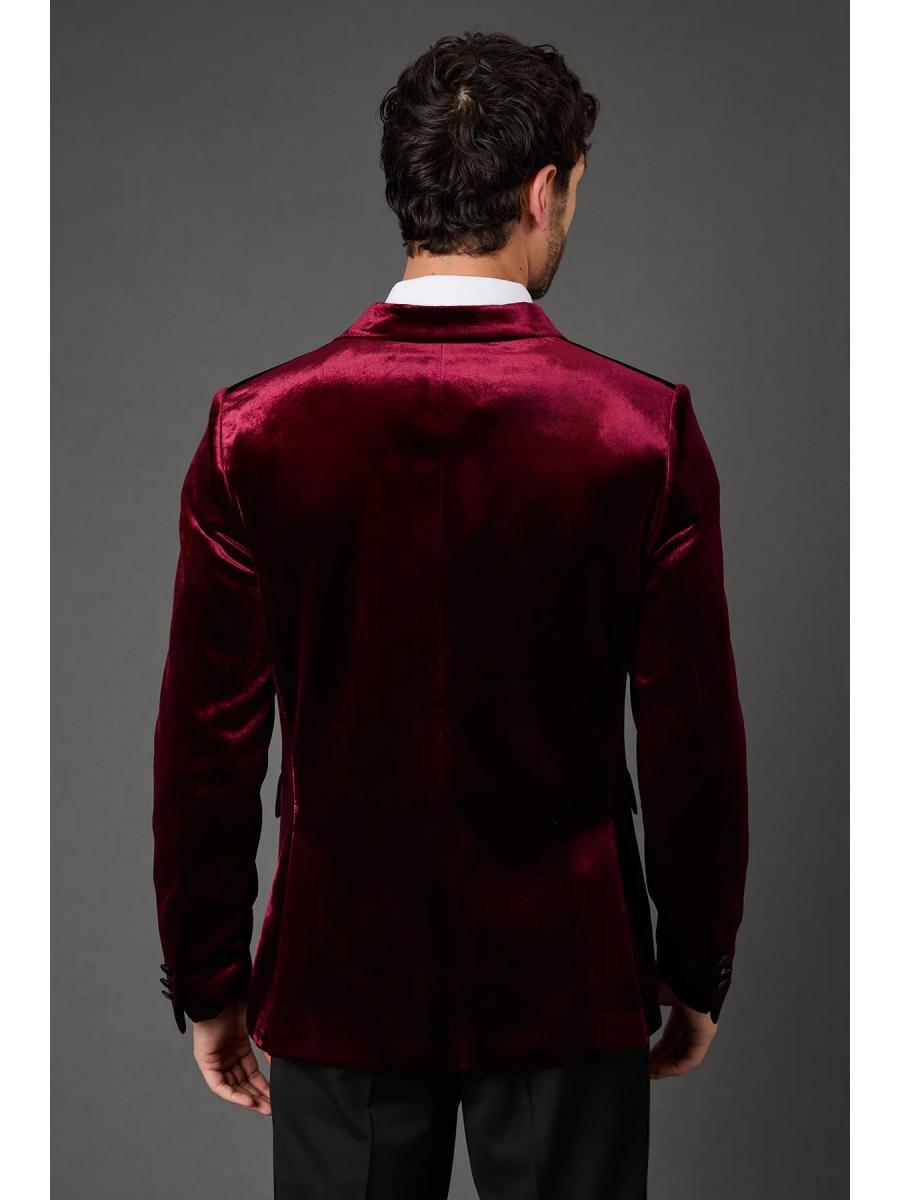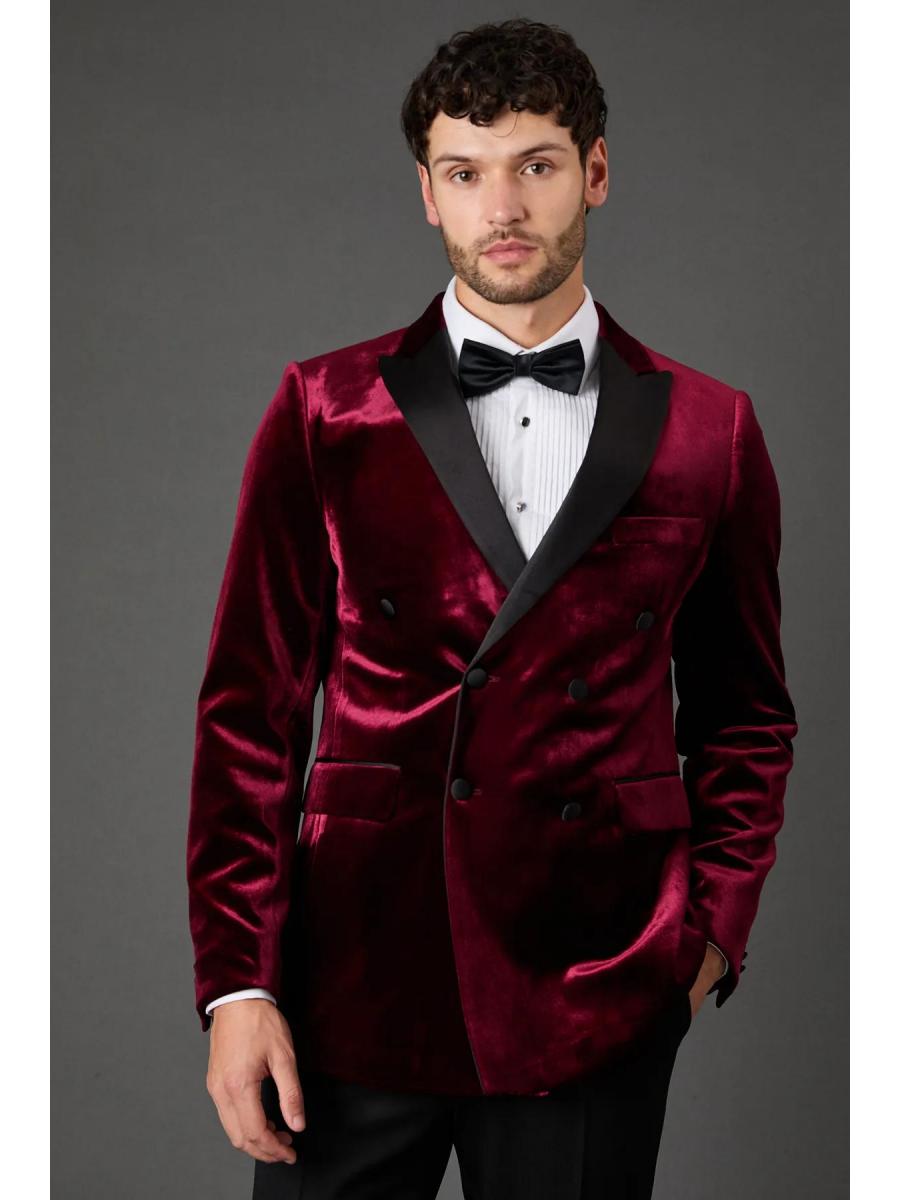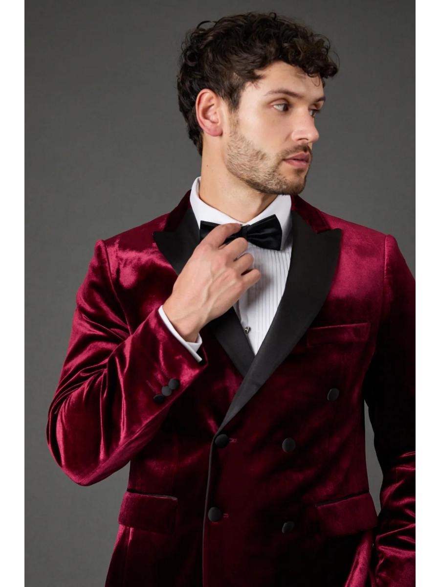 Burgundy Velvet Double Breasted Tuxedo Jacket