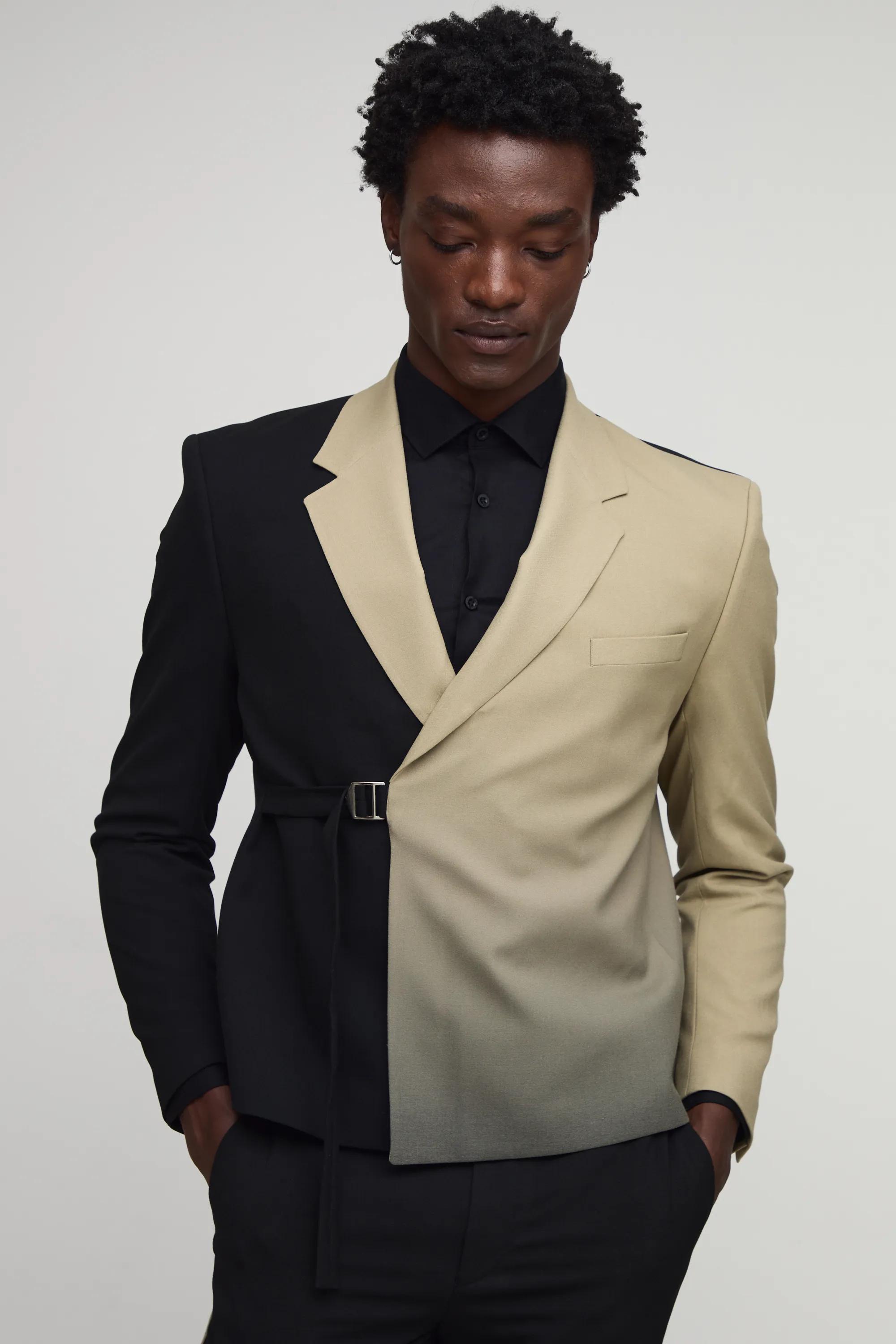 Suits | Relaxed Ombre Colour Block Cropped Suit Jacket | boohooMAN
