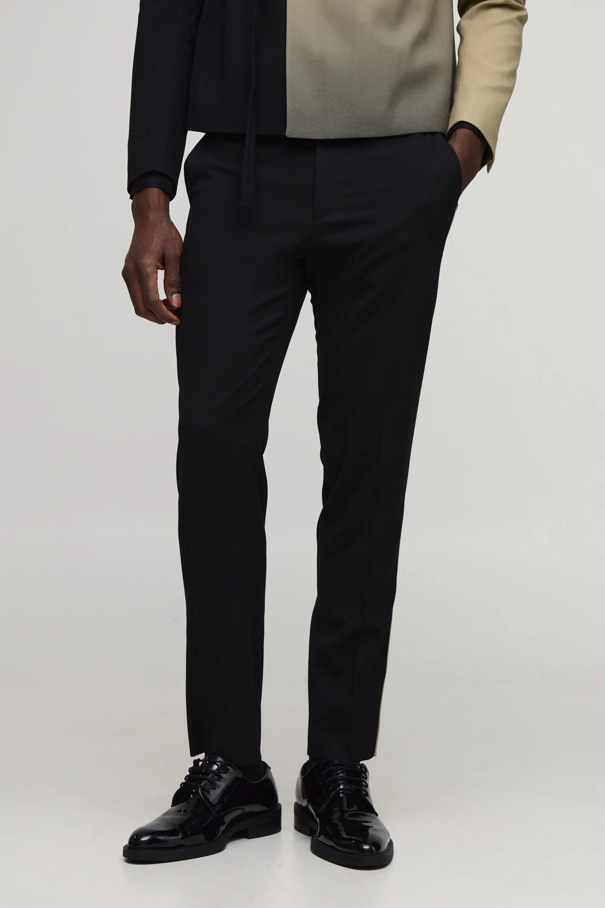 Suits | Slim Fit Contrast Tape Tailored Trousers | boohooMAN
