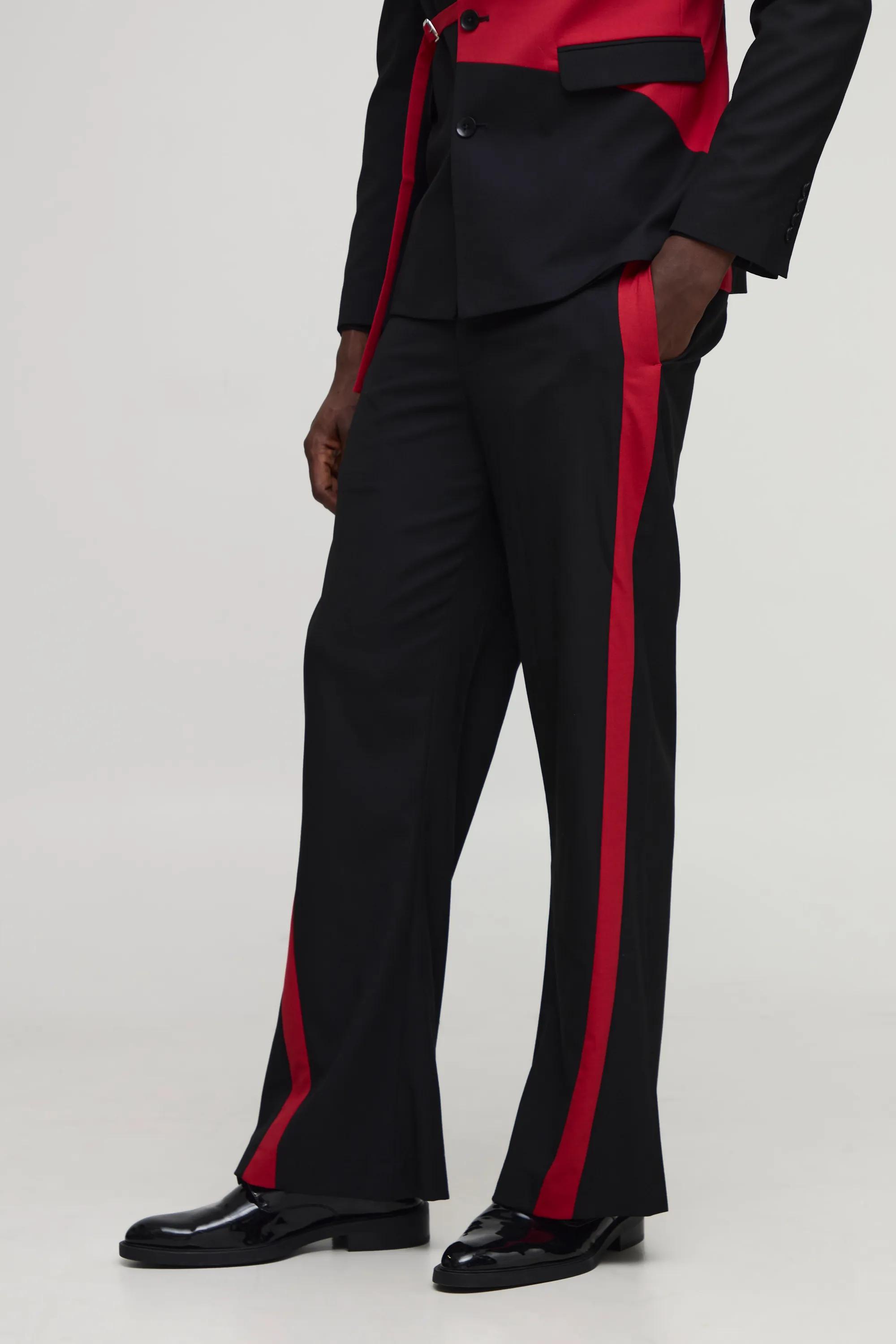 Suits | Flared Contrast Tape Tailored Trousers | boohooMAN