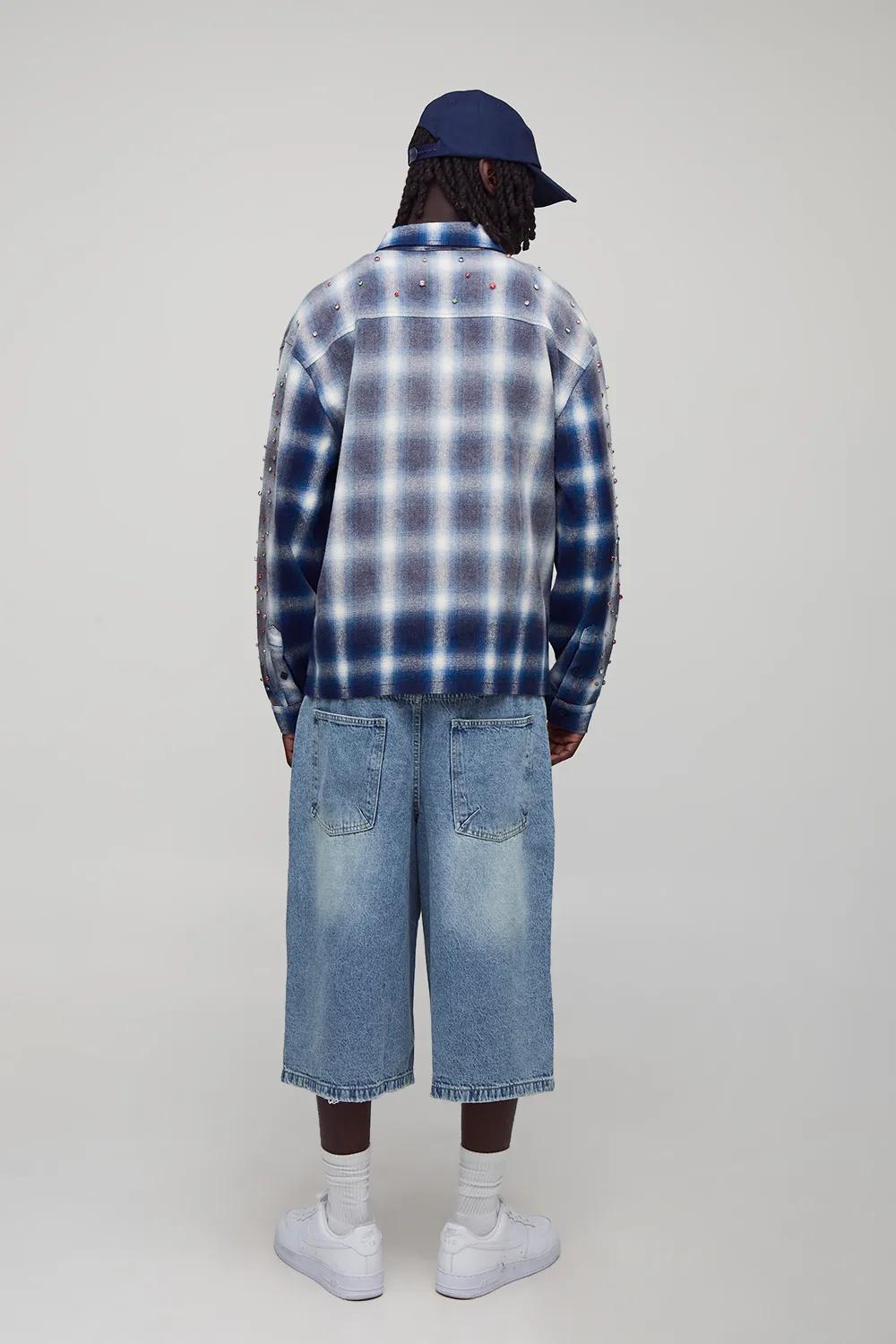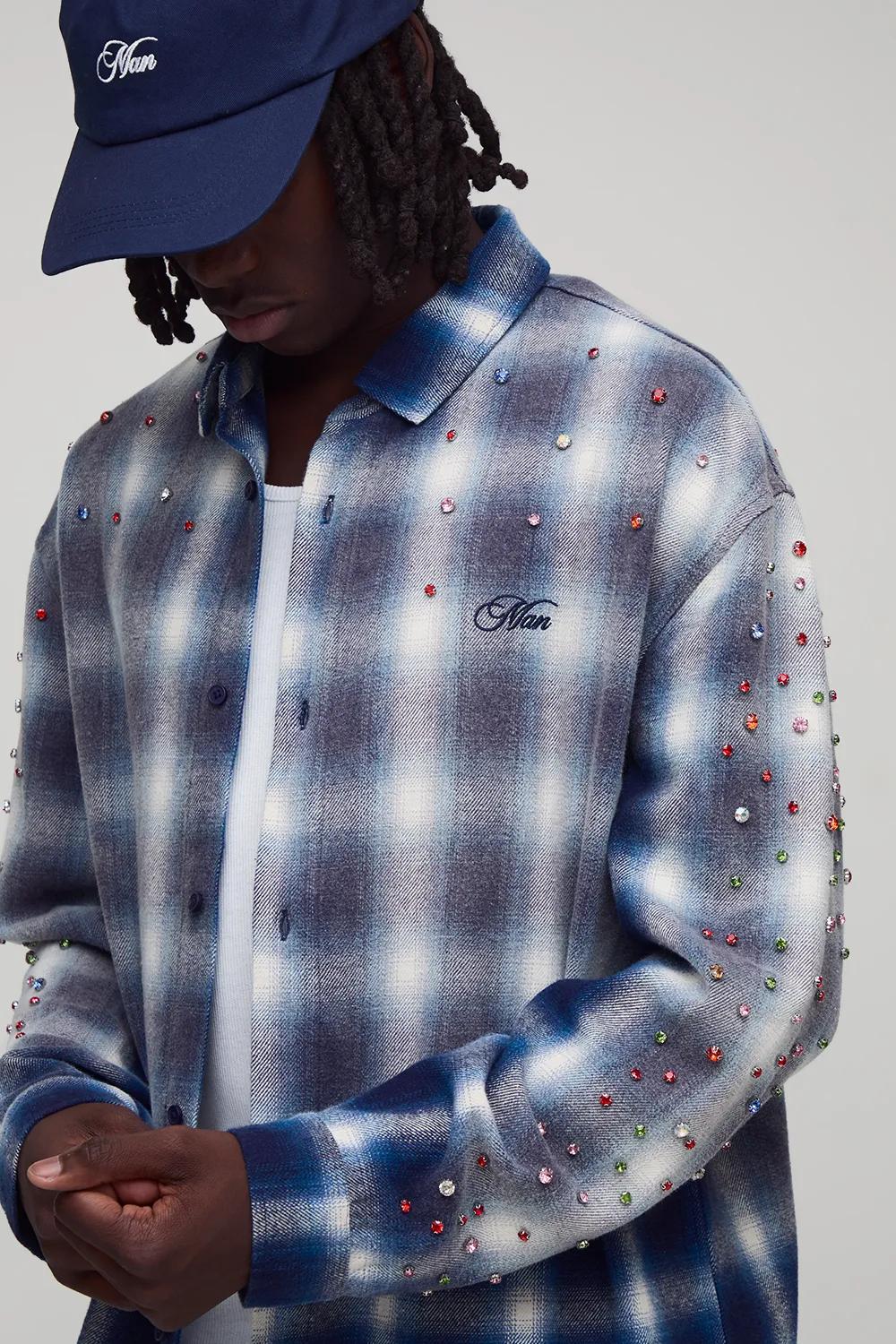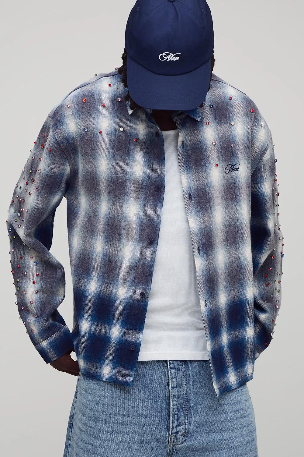 Shirts | Oversized Embellished Checked Overshirt | boohooMAN