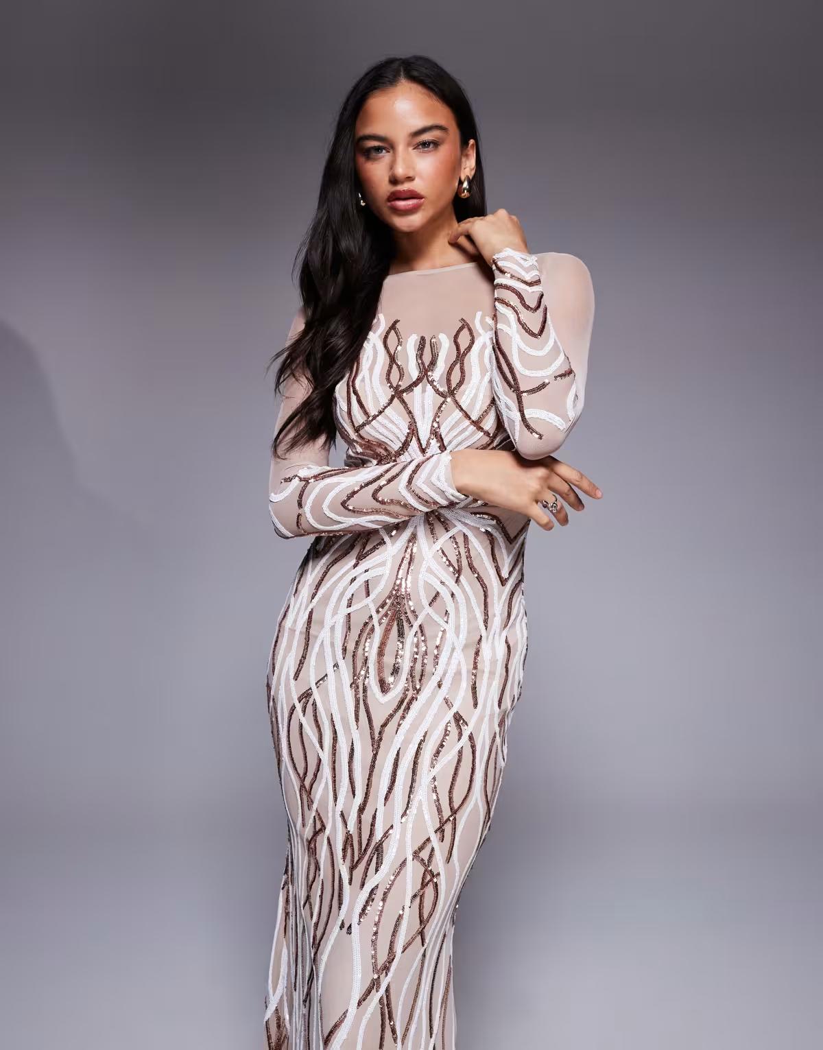 Main: 95% Polyester, 5% Elastane.Sometimes a plain dress doesn’t quite cut it. That’s where Goddiva steps in – we’re talking sequin embellishment, lace trims and embroidered details. Expect floor-sweeping dresses cut with plunge necks, keyhole backs and flowing fishtail skirts. Bonus: its jumpsuits are just as glitzy, too.Size & FitModel's height: 176cm / 5' 9.5