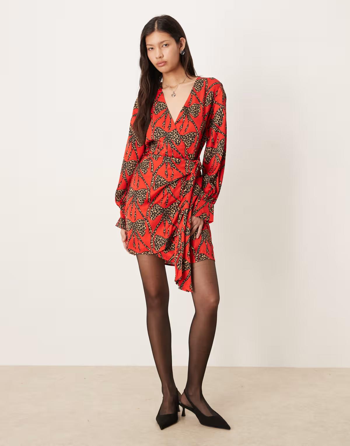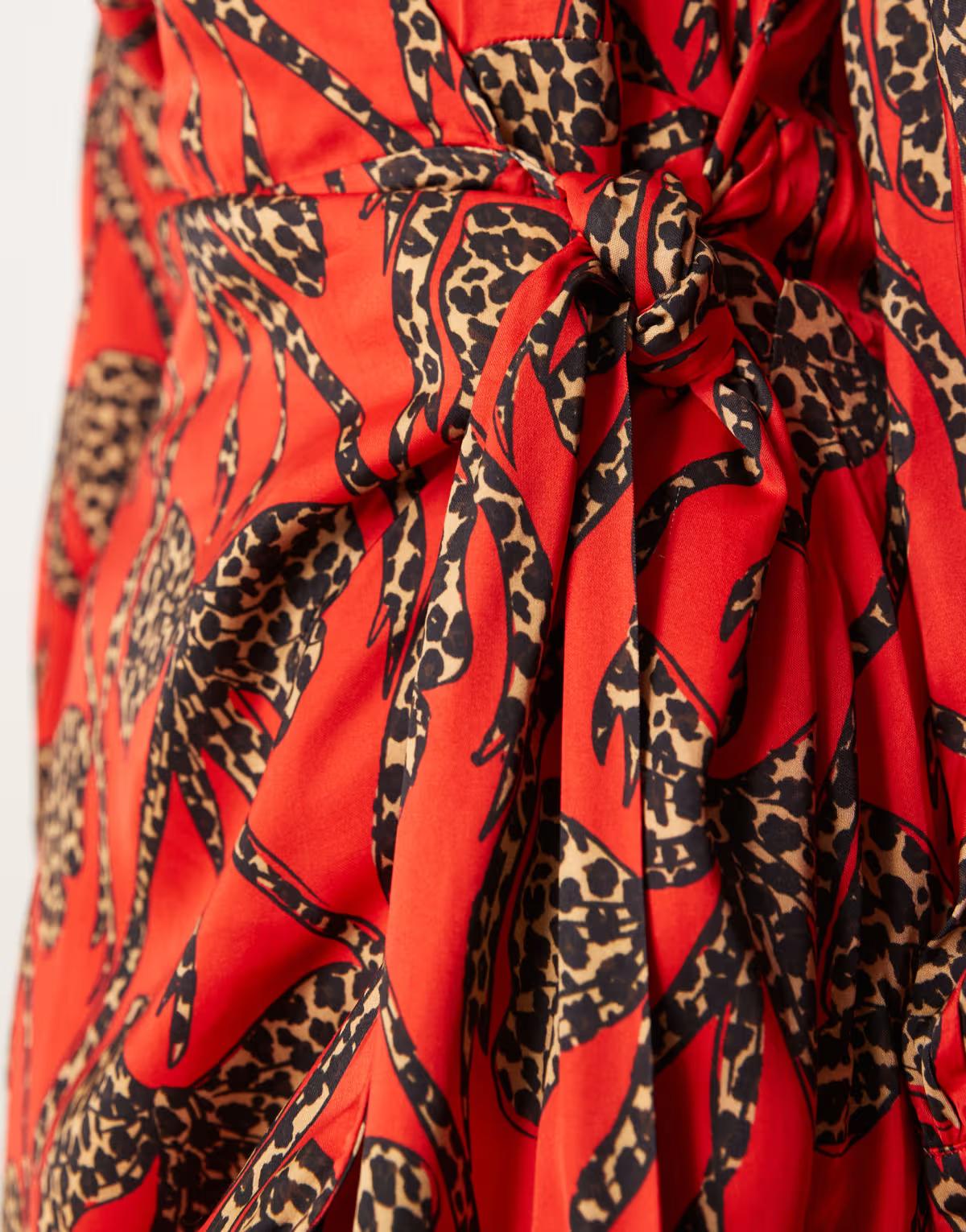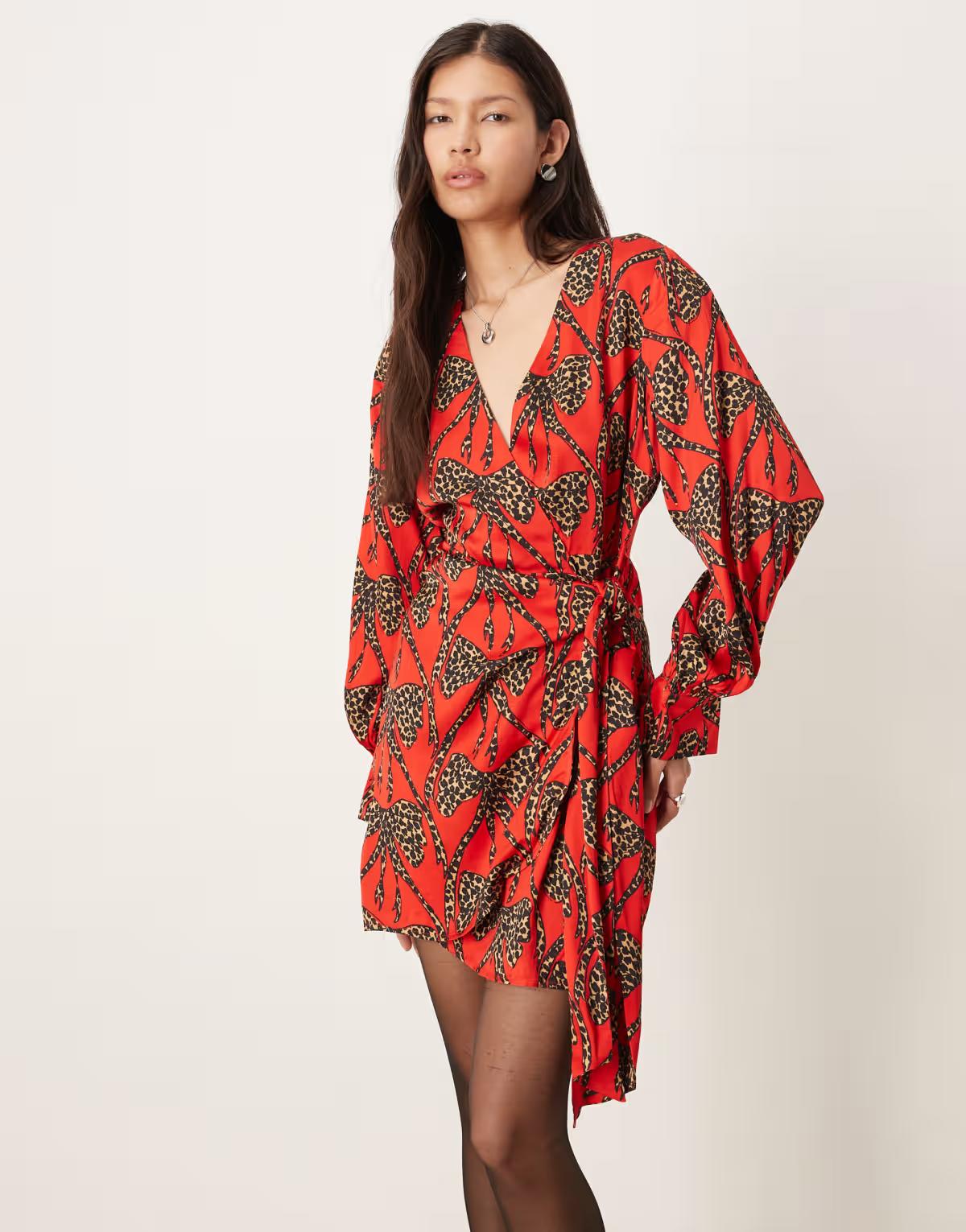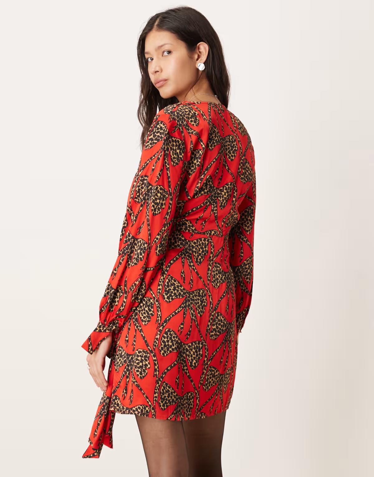 Never Fully Dressed leopard bow satin mini dress in red