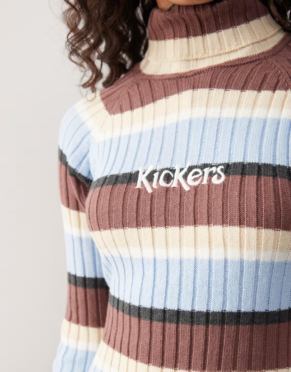 Main: 85% Acrylic, 15% Wool.French designed label Kickers began their footwear revolution in 1970, inspired by the rebellious spirit of Parisian students. Taking their design cue from classic French denim, Kickers distinct triple stitched seams pay homage to the peace and love generation, and have since been updated in pastel colourways and glossed patent finishes.