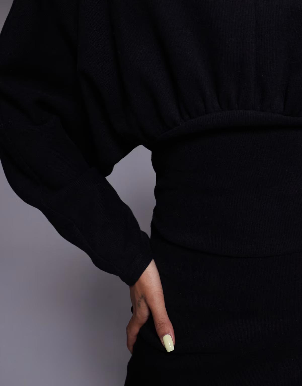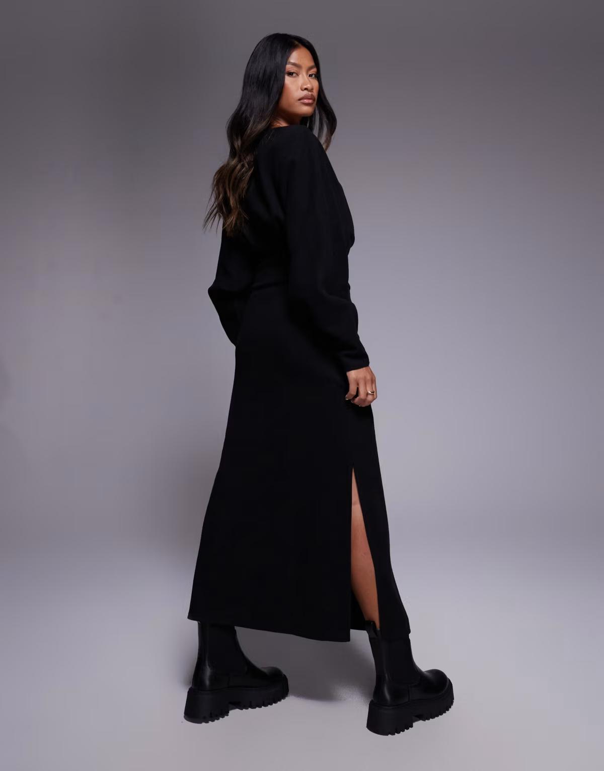 ASOS DESIGN supersoft slash neck blouson batwing midi dress in black