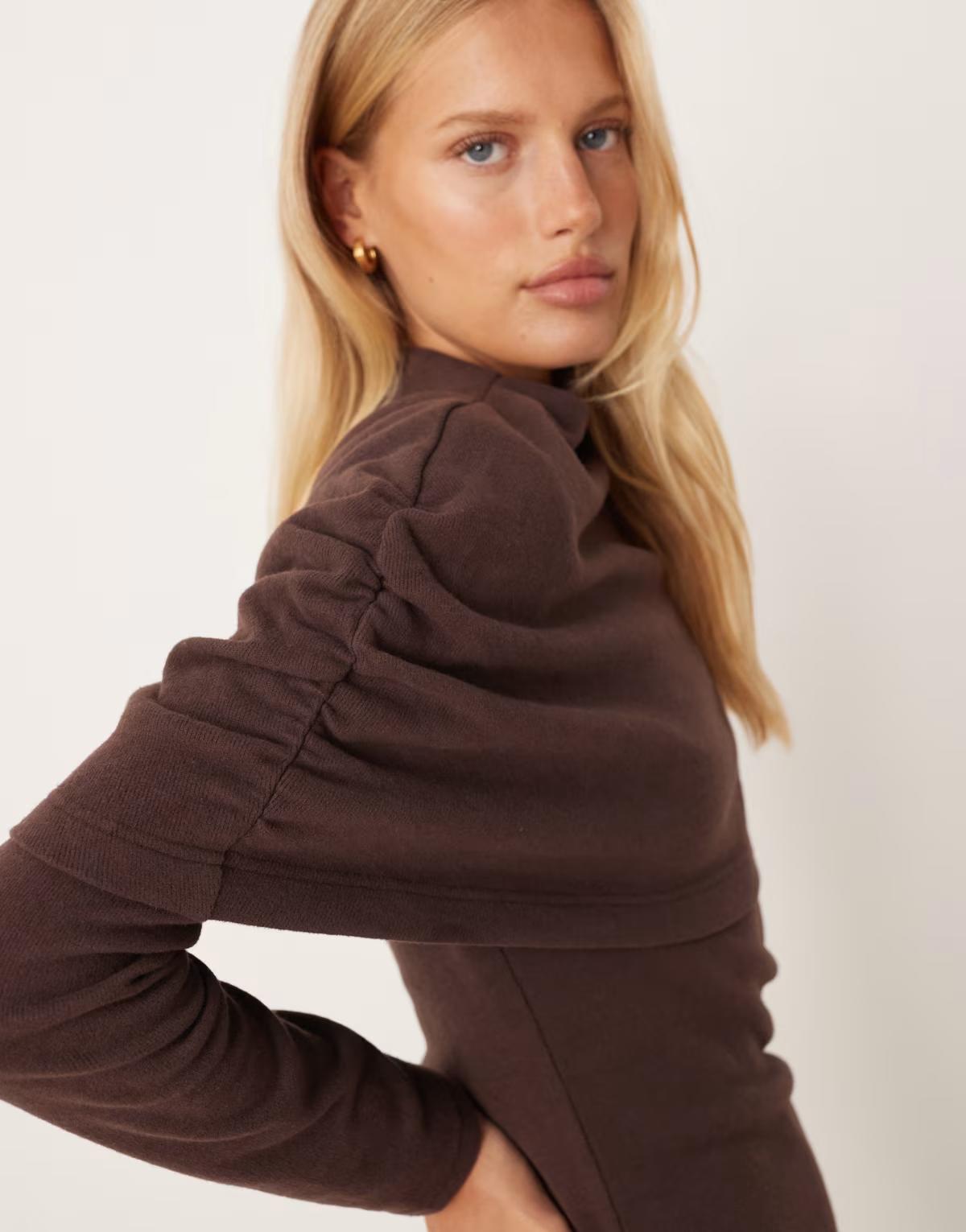 ASOS DESIGN supersoft grown on ruched cape mini dress in chocolate brown