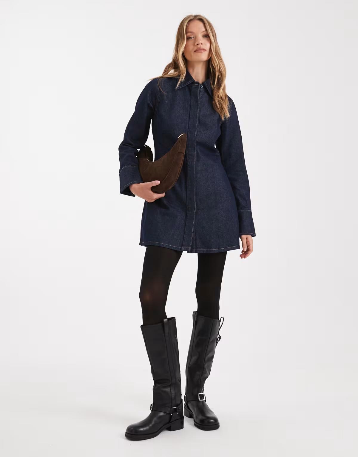 ASOS DESIGN denim shirt dress with cinch back detail in rinse