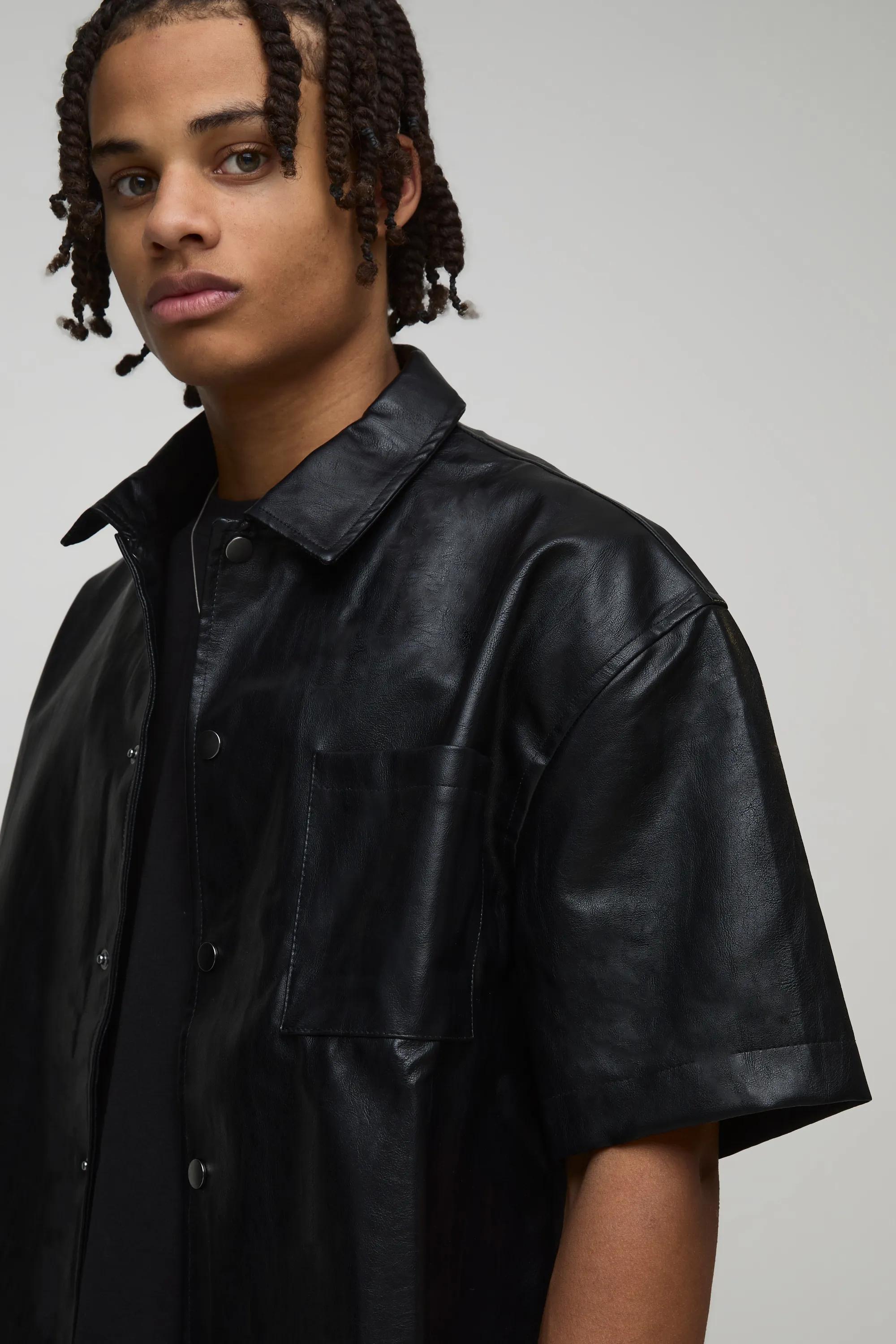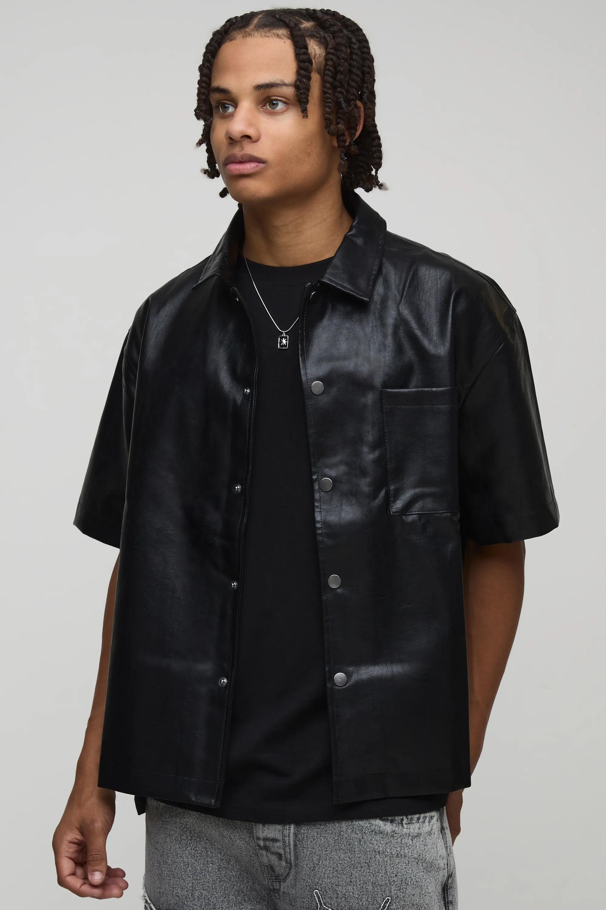 Shirts | Oversized Short Sleeve PU Collared Overshirt | boohooMAN
