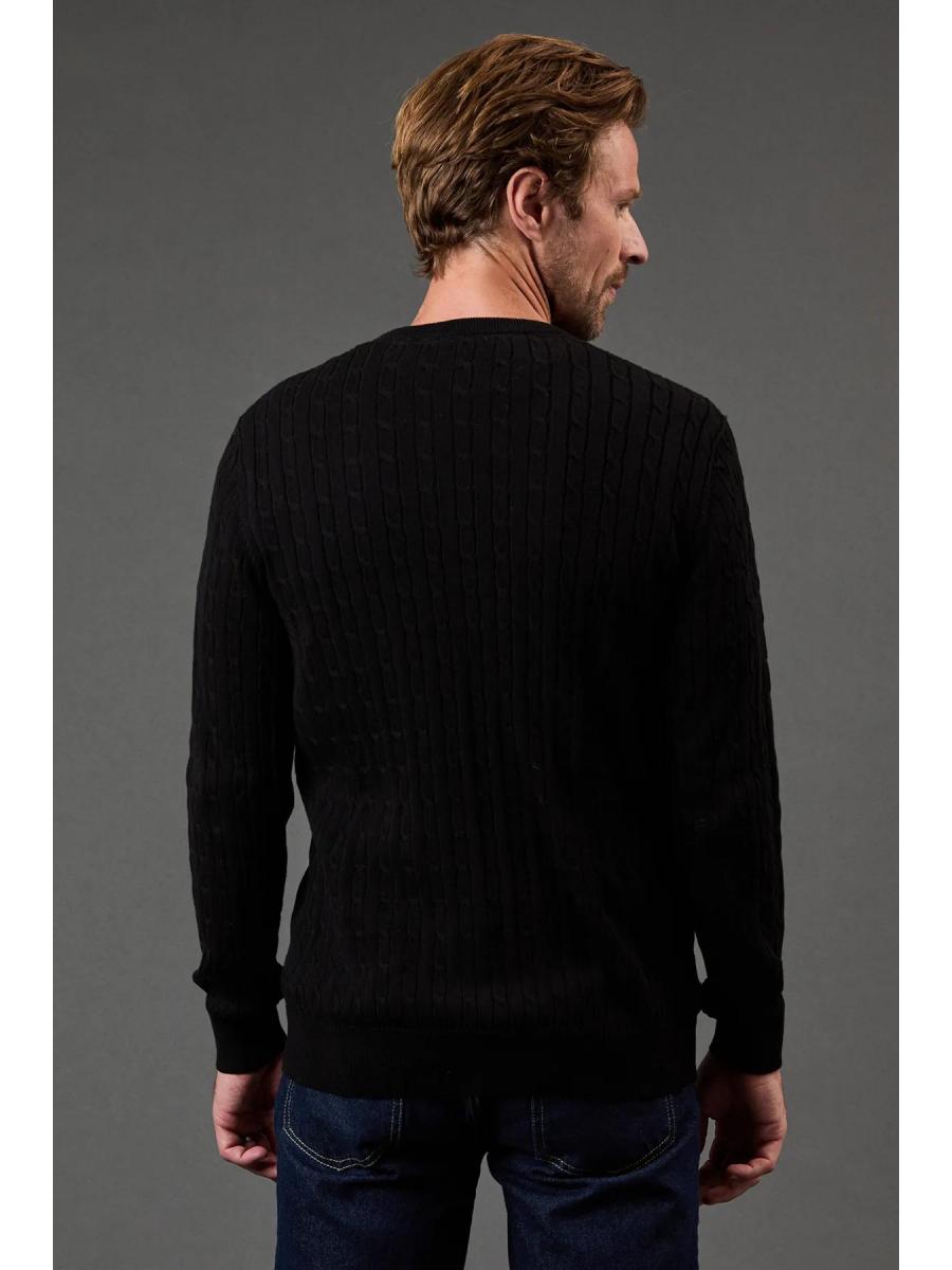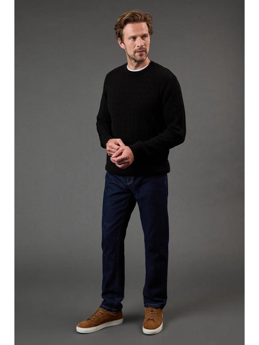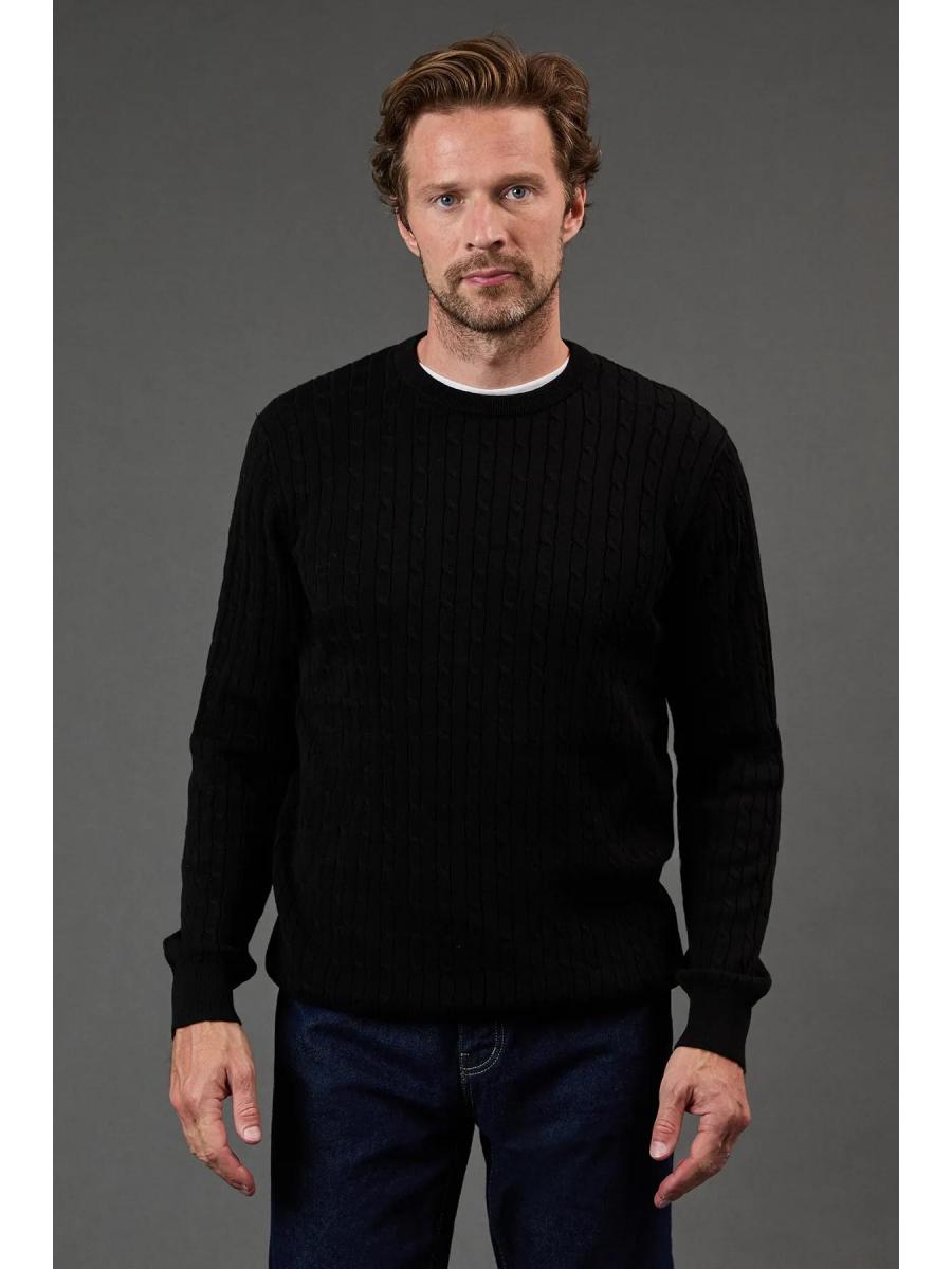 Cotton Cable Crew Neck from Maine. Upgrade your knitwear attire with statement styles and discover this must-have men's cotton jumper. Featuring long-fitted sleeves with stretch cuffs, a circular neckline, and a tailored cut finish for the perfect fit. Made from 100% Cotton. Wash at 40. Model wears a Size M.