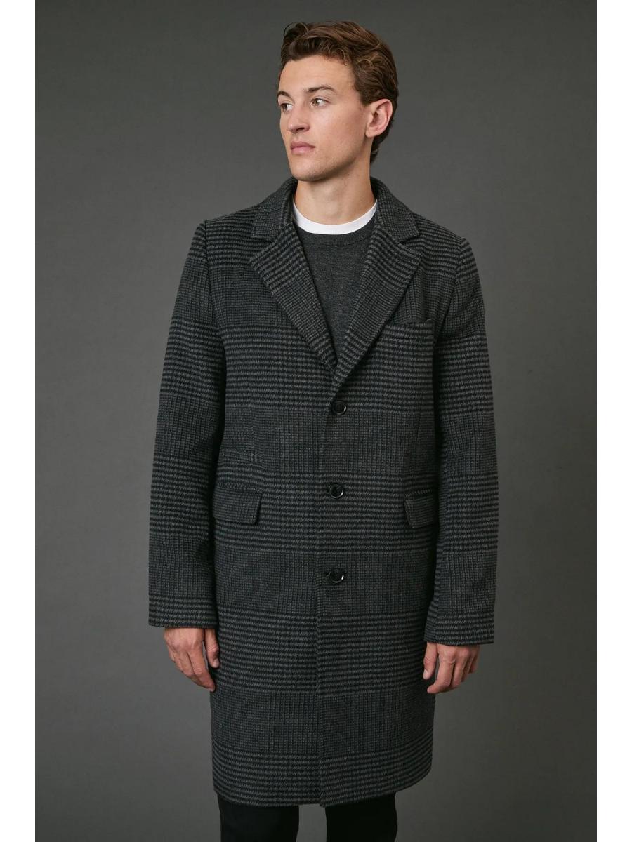 \u003cdiv\u003e\n \u003cul\u003e\n \u003cli\u003eClassic Prince of Wales check pattern throughout for timeless sophistication\u003c/li\u003e\n \u003cli\u003eThree-button front closure with notched lapels for a refined silhouette\u003c/li\u003e\n \u003cli\u003eMid-length cut offering versatile styling options and optimal warmth\u003c/li\u003e\n \u003cli\u003ePractical side pockets perfect for keeping essentials close at hand\u003c/li\u003e\n \u003cli\u003eSingle back vent providing ease of movement and a tailored appearance\u003c/li\u003e\n \u003c/ul\u003e\n \u003cp\u003eThe Burton Dark Grey Prince of Wales Check Epsom Coat presents a masterclass in understated British style. This versatile outerwear piece transitions effortlessly from casual weekend outings to more polished occasions. As shown, pair with slim black trousers and white trainers for a contemporary casual look that works brilliantly for family gatherings or weekend pub visits. For cooler days, layer over a crew neck jumper and button-down shirt. The distinctive check pattern adds visual interest without overwhelming your ensemble, making this coat an excellent foundation piece for your autumn through spring wardrobe. Perfect for the man who appreciates classic design with practical functionality, this Epsom coat will quickly become your go-to outerwear choice for everything from football matches to casual Friday office wear.\u003c/p\u003e\n\u003c/div\u003e