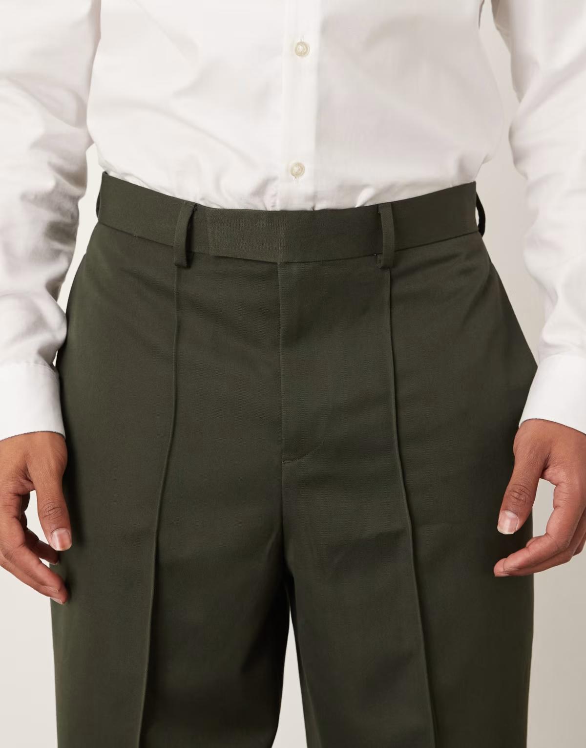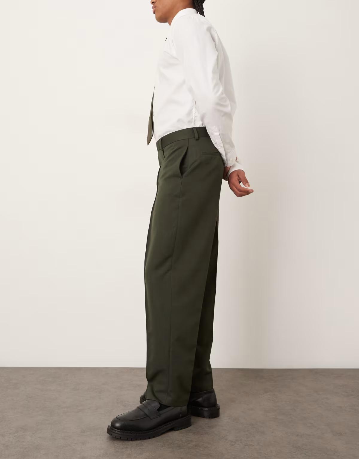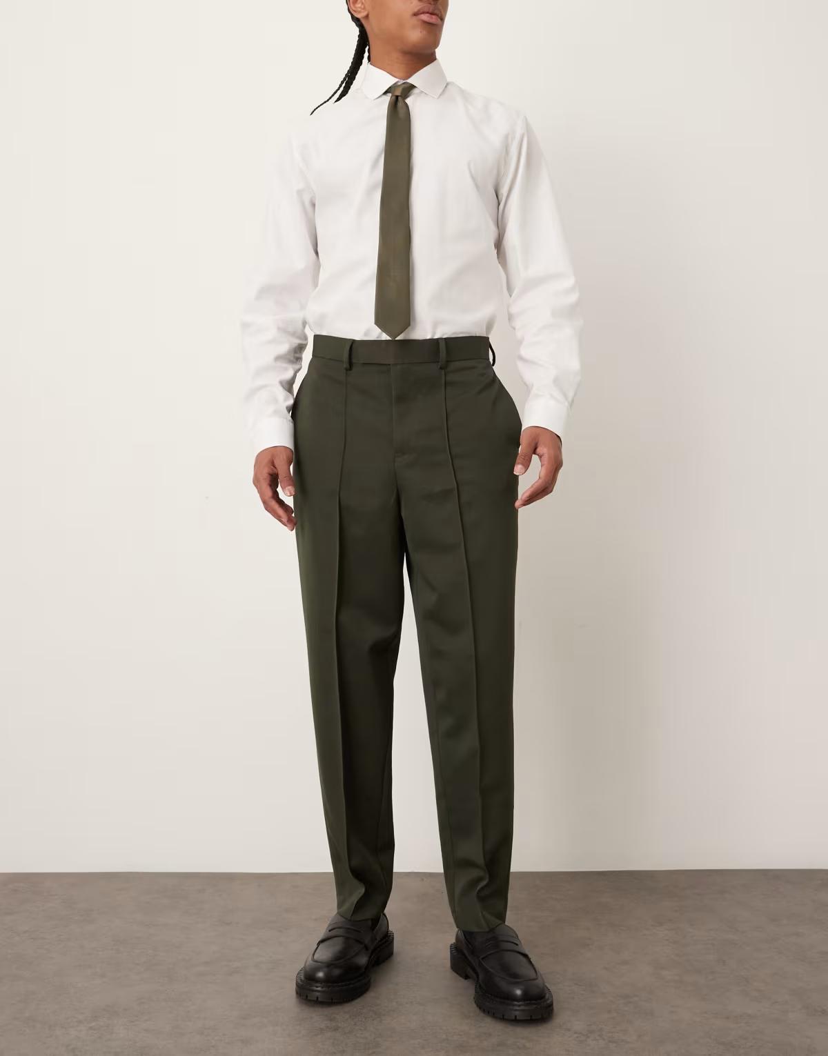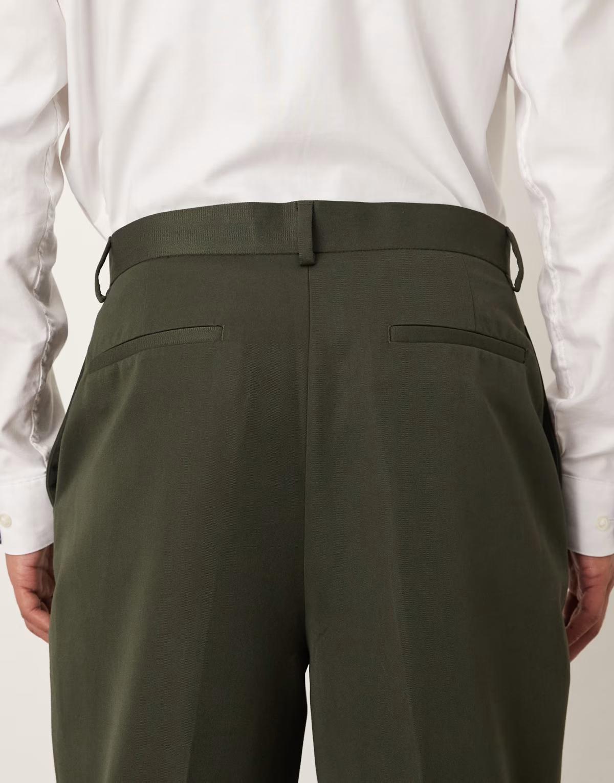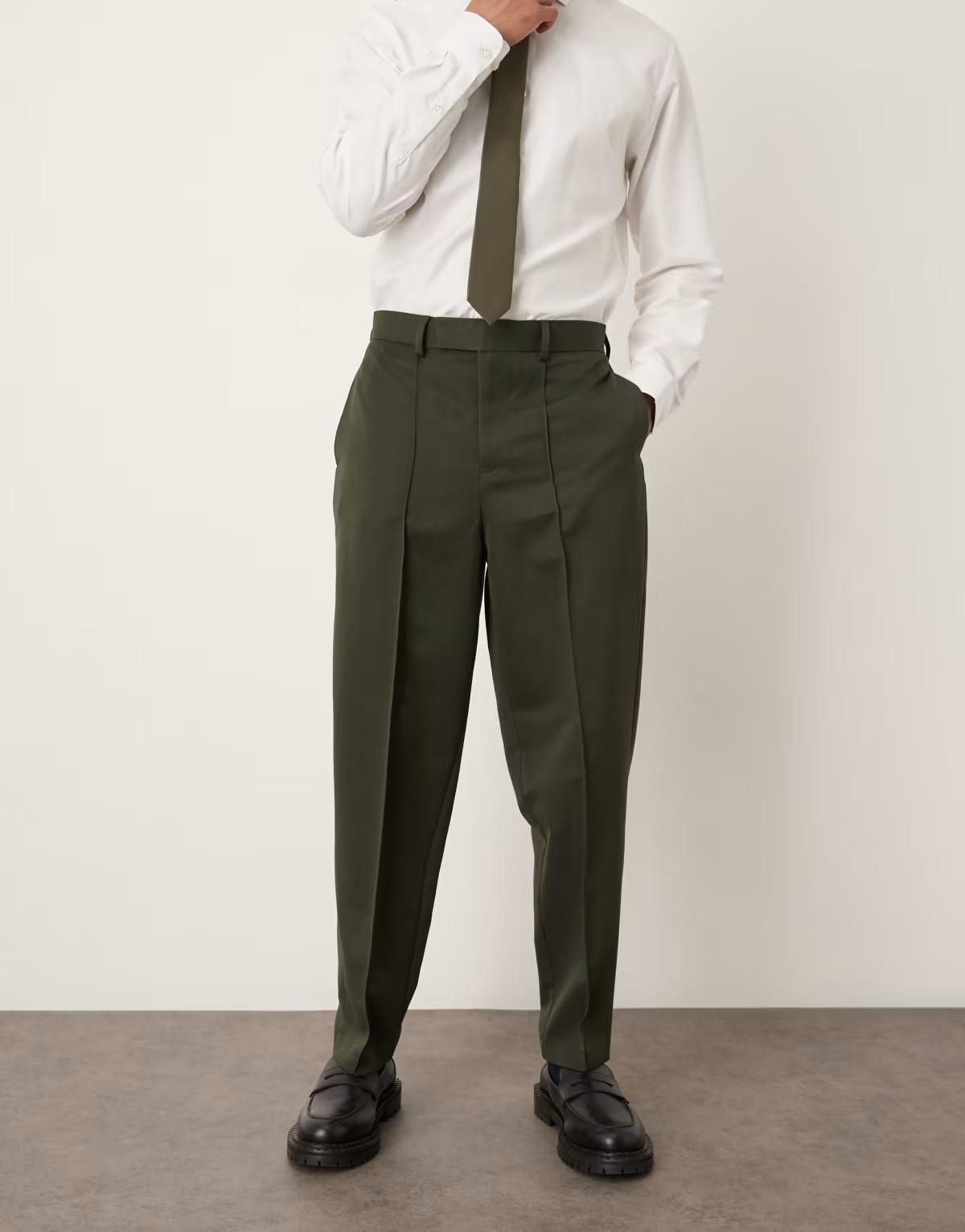 ASOS DESIGN smart relaxed tapered trousers with pintuck in dark green