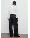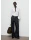 Tejido de algodón estilo tejano vaquero. Diseño largo. Diseño wide leg. Tiro medio. Trabillas. Detalle de pinzas. Dos bolsillos laterales. Dos bolsillos de parche en la parte posterior. Cierre oculto de botón, gancho y cremallera