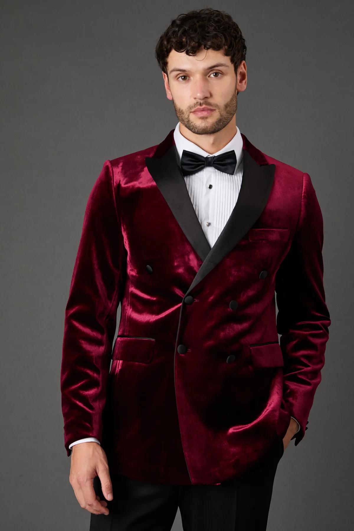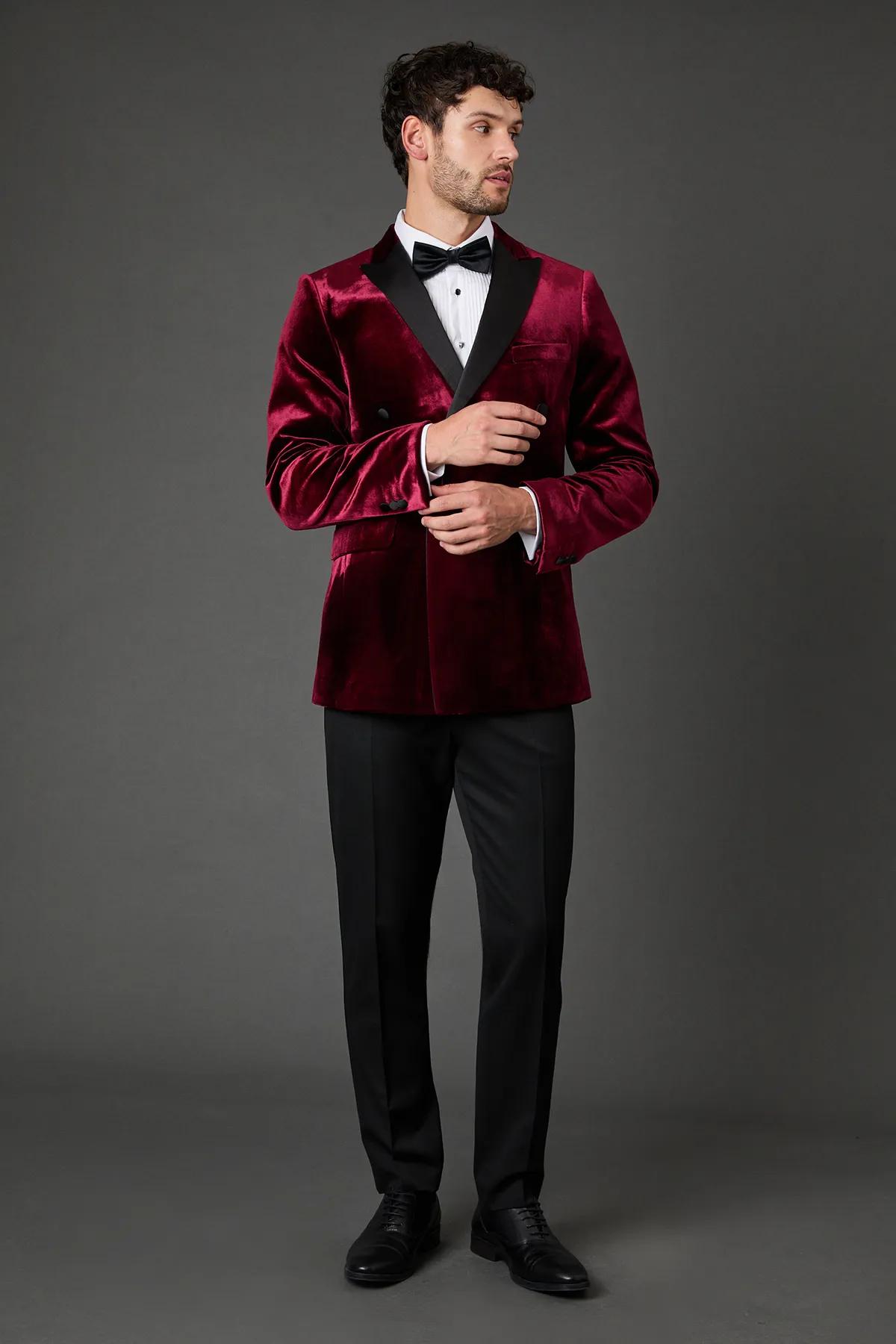 Suits | Burgundy Velvet Double Breasted Tuxedo Jacket | Burton
