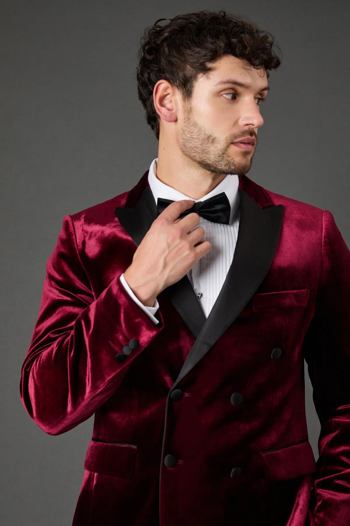 Discover Burgundy Velvet Double Breasted Tuxedo Jacket available to buy online at boohoo.com. Available with quick delivery and easy return options. Shop now!