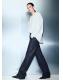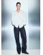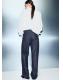 Tejido de algodón estilo tejano vaquero. Tejido con brillos. Diseño largo. Diseño recto. Tiro medio. Trabillas. Cinco bolsillos. Cierre de cremallera y botón. Forro interior. Largo interior 84 cm