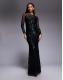 Main: 95% Polyester, 5% Elastane.Sometimes a plain dress doesn’t quite cut it. That’s where Goddiva steps in – we’re talking sequin embellishment, lace trims and embroidered details. Expect floor-sweeping dresses cut with plunge necks, keyhole backs and flowing fishtail skirts. Bonus: its jumpsuits are just as glitzy, too.Size & FitModel's height: 176cm / 5' 9.5