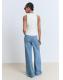 Tejido de algodón estilo tejano vaquero. Diseño largo. Diseño wideleg. Tiro alto. Trabillas. Dos bolsillos delanteros. Dos bolsillos en la parte posterior. Cierre de botón y cremallera. Largo interior 82,5 cm. Caña ancha. Dos bolsillos de parche en la parte delantera. Cierre delantero de cremallera y botón. Largo interior 85 cm