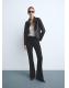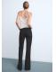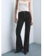 Tejido de algodón estilo tejano vaquero. Diseño largo. Estilo flare. Tiro alto. Trabillas. Cinco bolsillos. Cierre de botón y cremallera. Largo interior 87,5 cm. Tejido confort con elasticidad