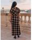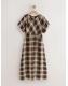 Brown Check Puff Sleeve Midi Dress