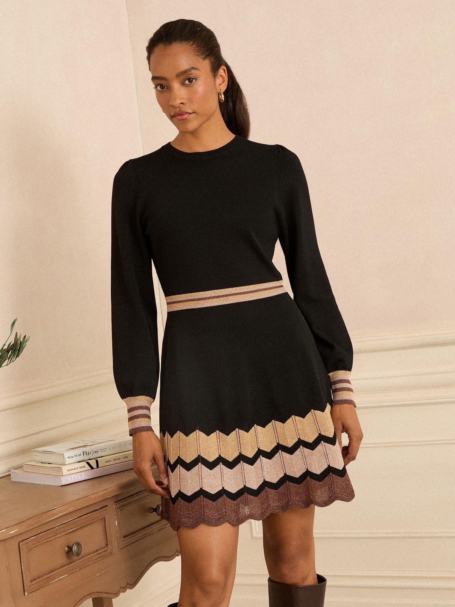 Love & Roses Black Chevron Lurex Knitted Mini Dress