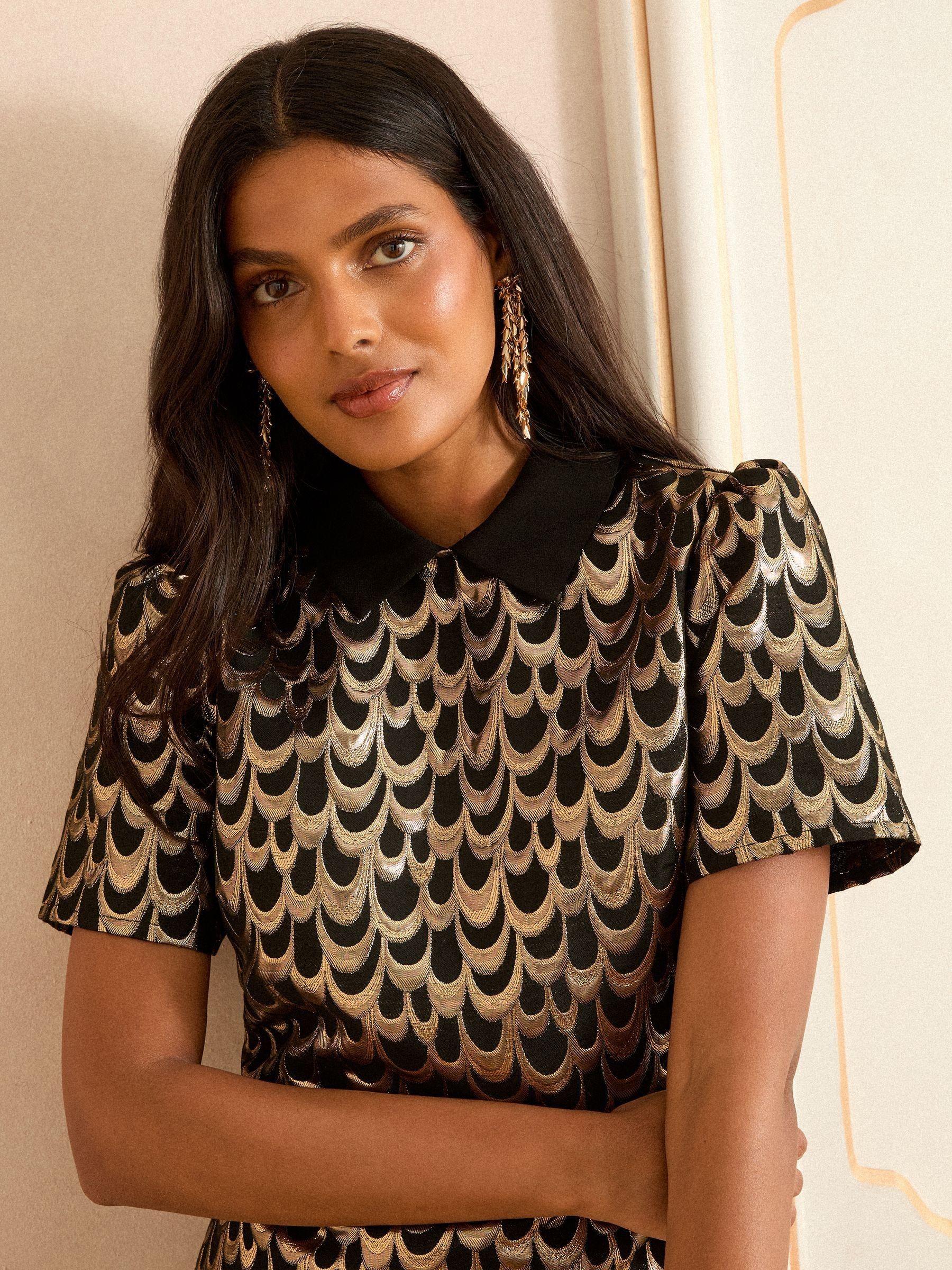 Main 75% Polyester, 15% Metallised fibre, 7% Cotton, 3% Viscose. Collar 100% Polyester. Lining 100% Polyester.
