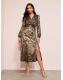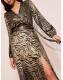 Friends Like These Black/Gold Long Sleeve Animal Foil Wrap Midi Dress