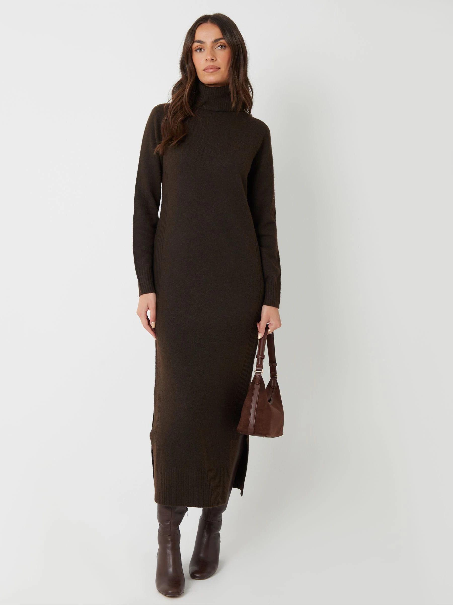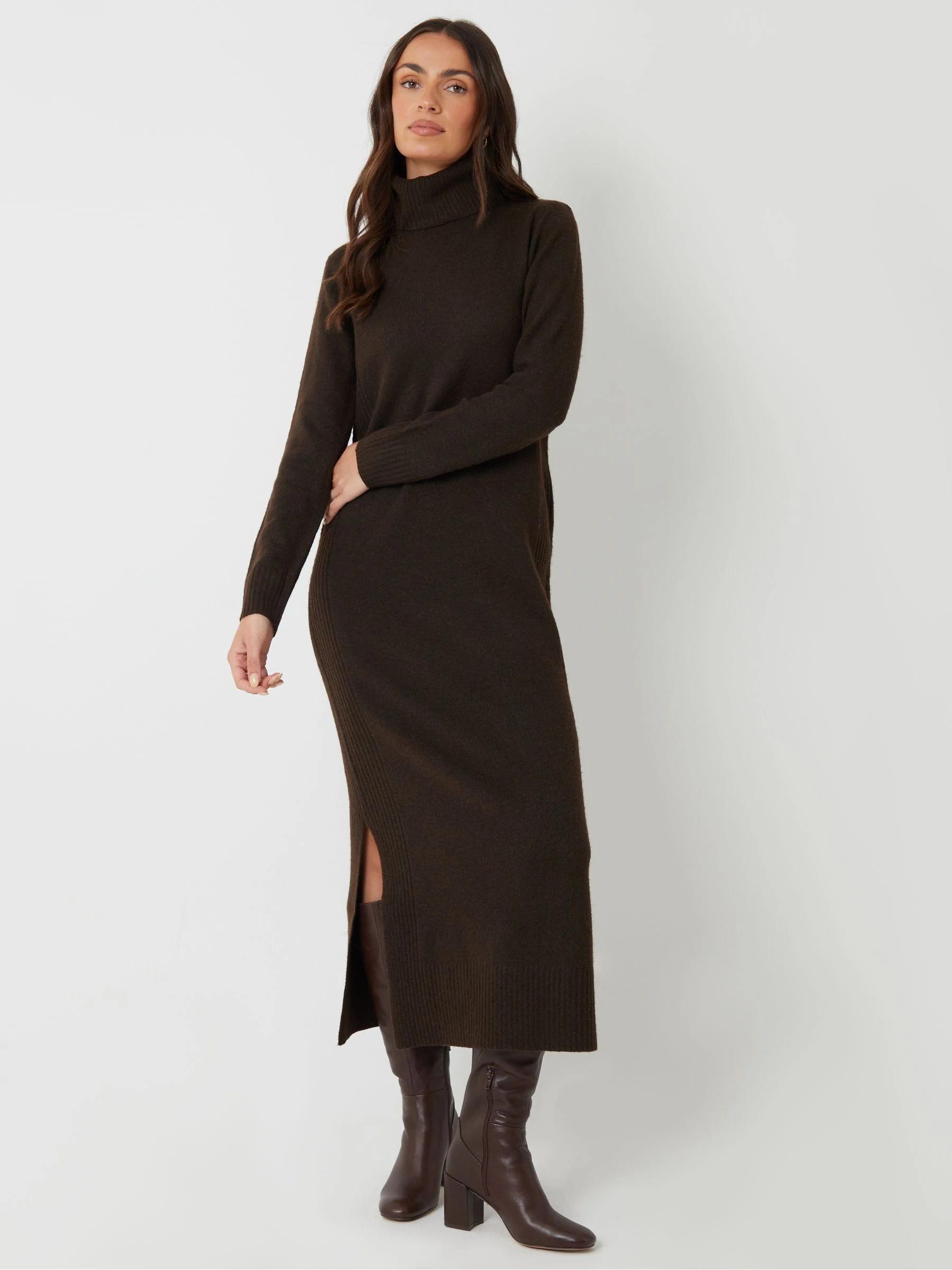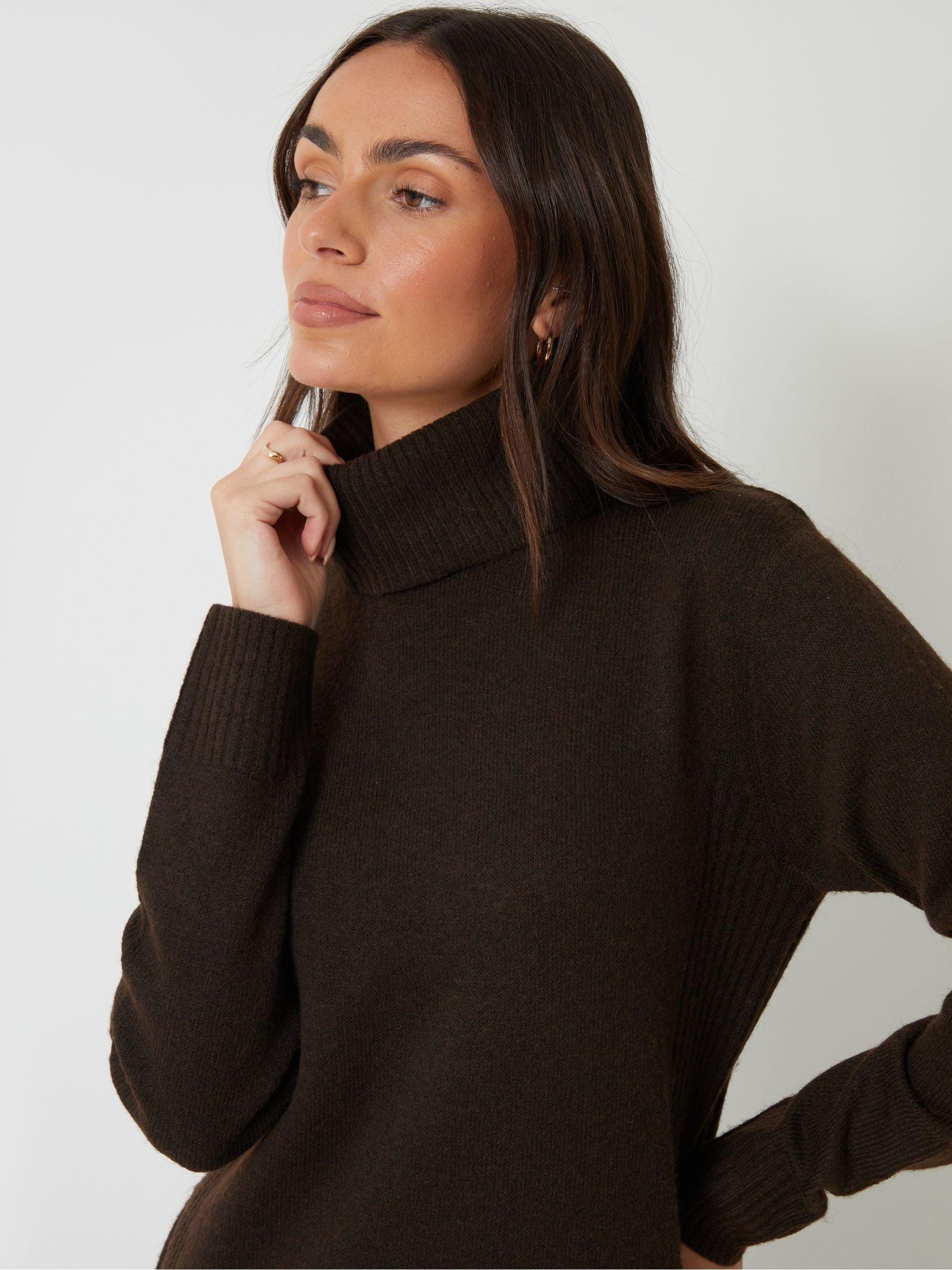 Threadbare Brown Knitted Roll Neck Maxi Dress