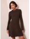 Friends Like These Brown Rib Detail Long Sleeve Mini Dress