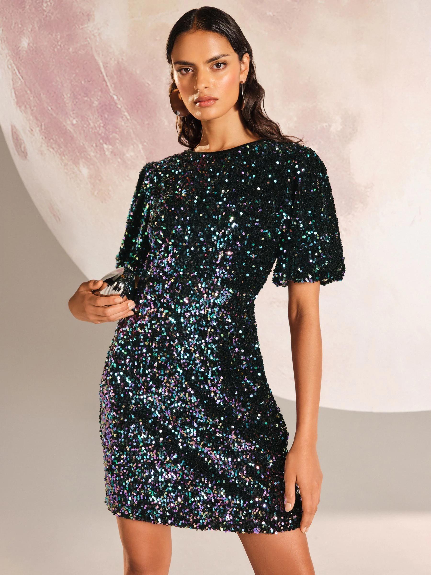 Love & Roses Multi Sequin Puff Sleeve Mini Dress