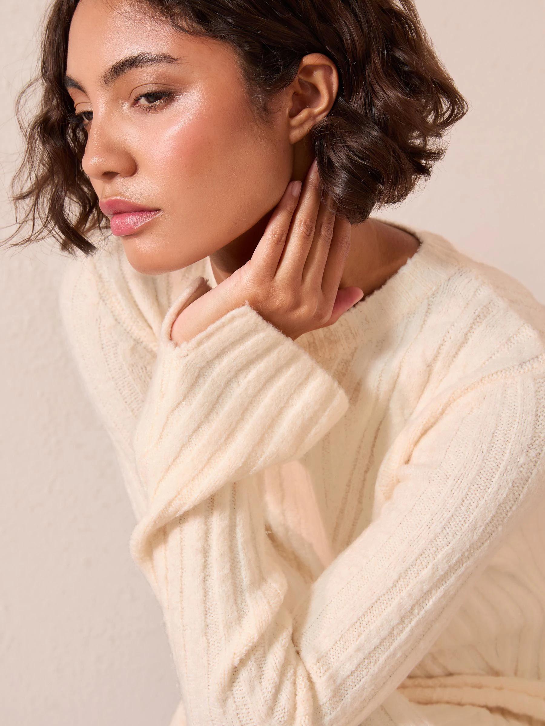 Friends Like These Ivory Rib Detail Long Sleeve Mini Dress