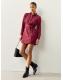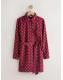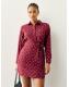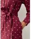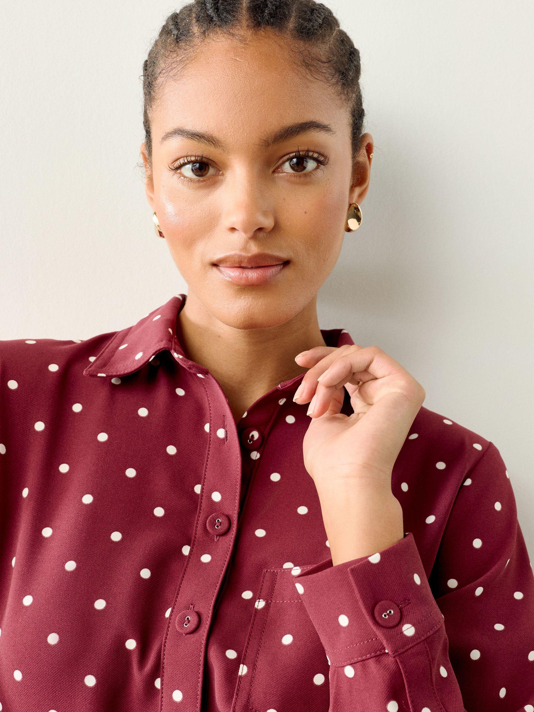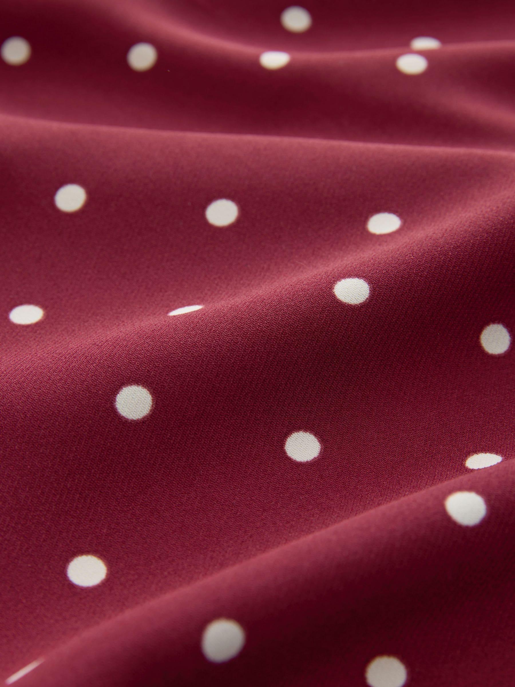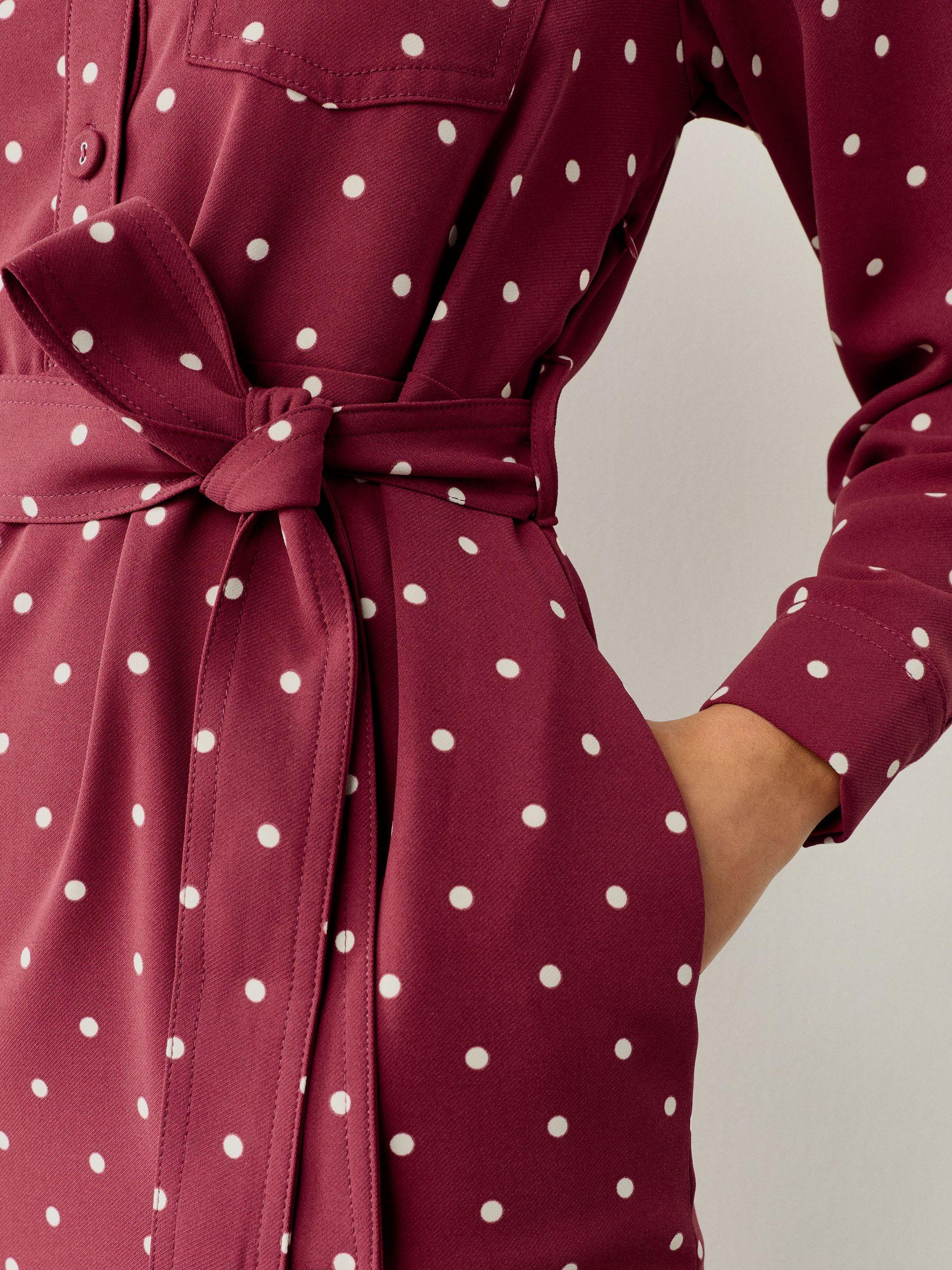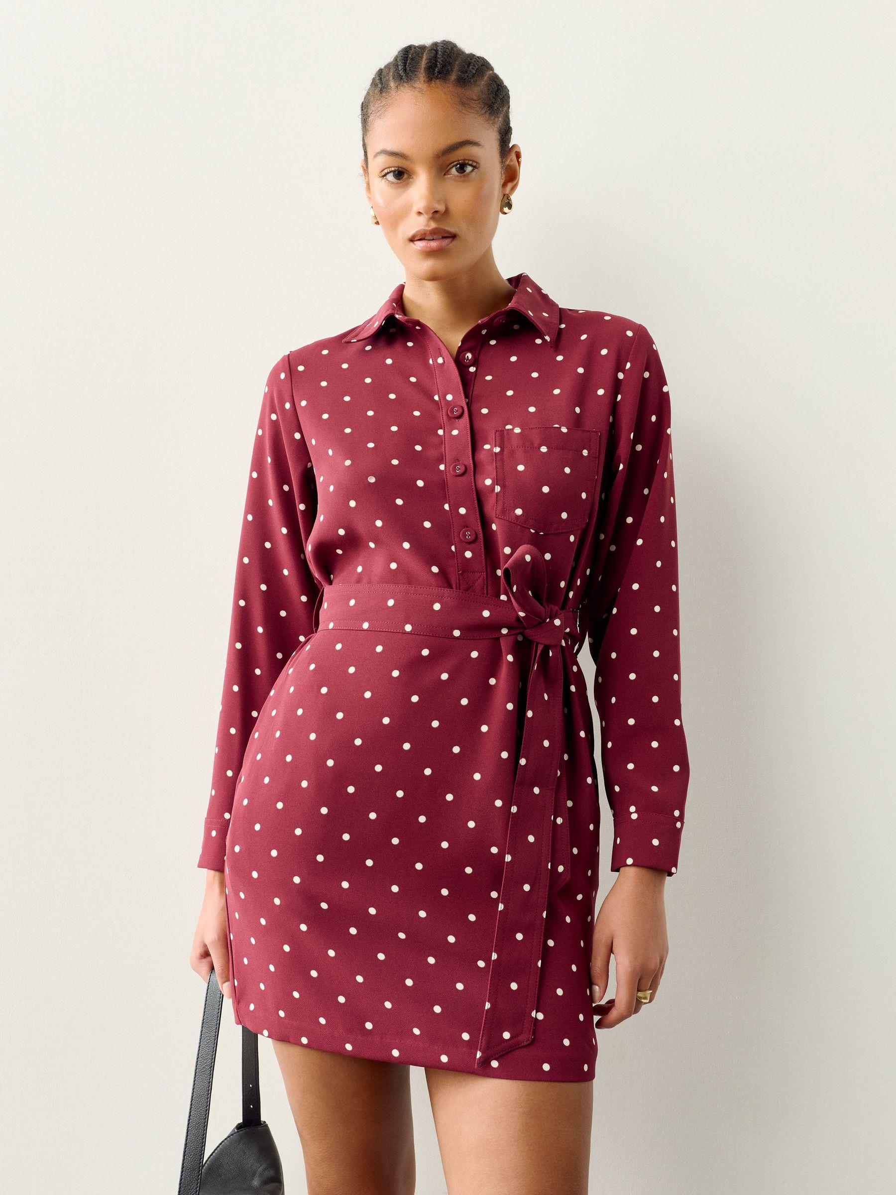 Burgundy Red Spot Long Sleeve Mini Tie Waist Shirt Dress