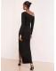 Lipsy Black Long Sleeve Off The Shoulder Gathered Waist Maxi Dress