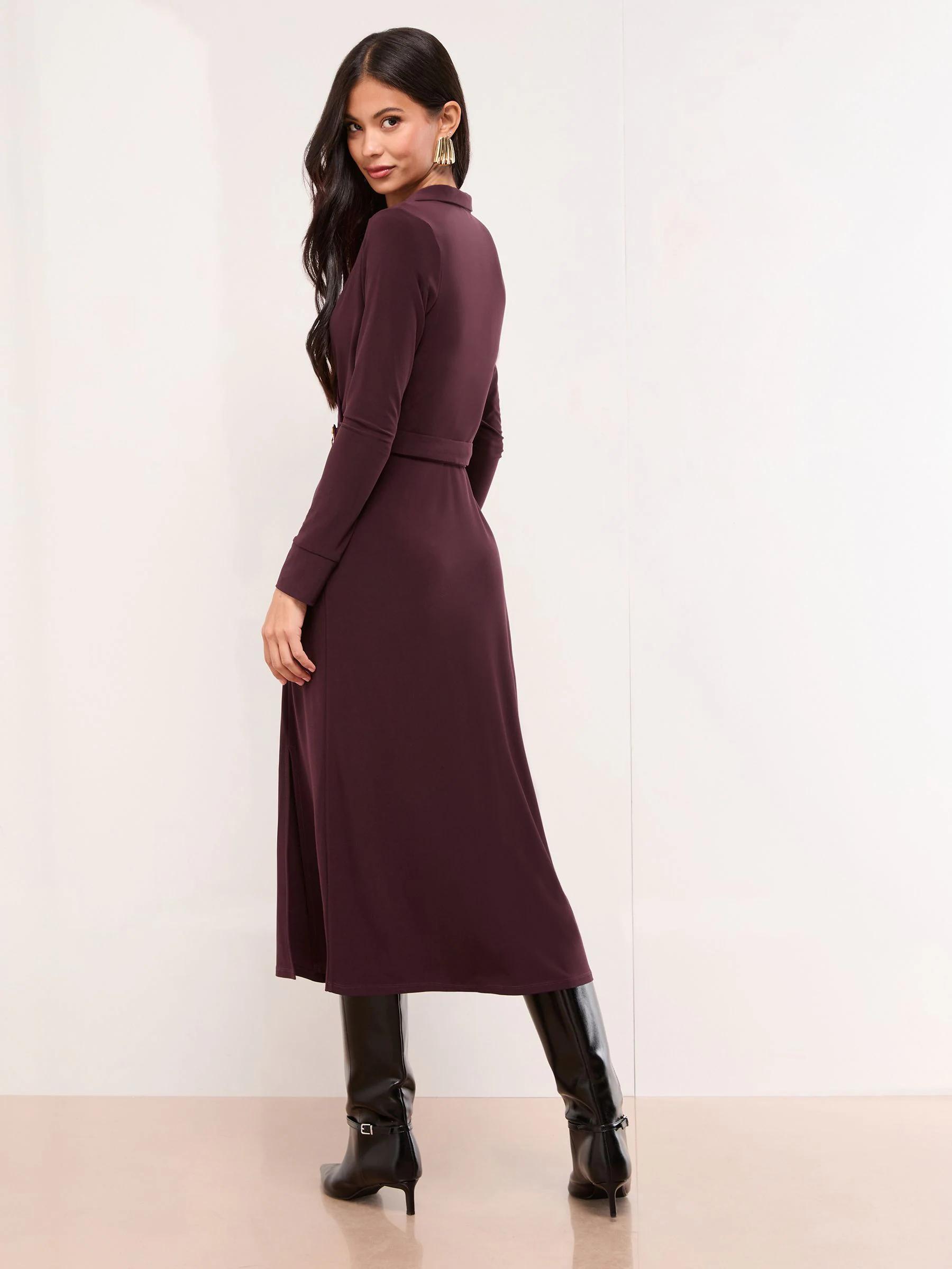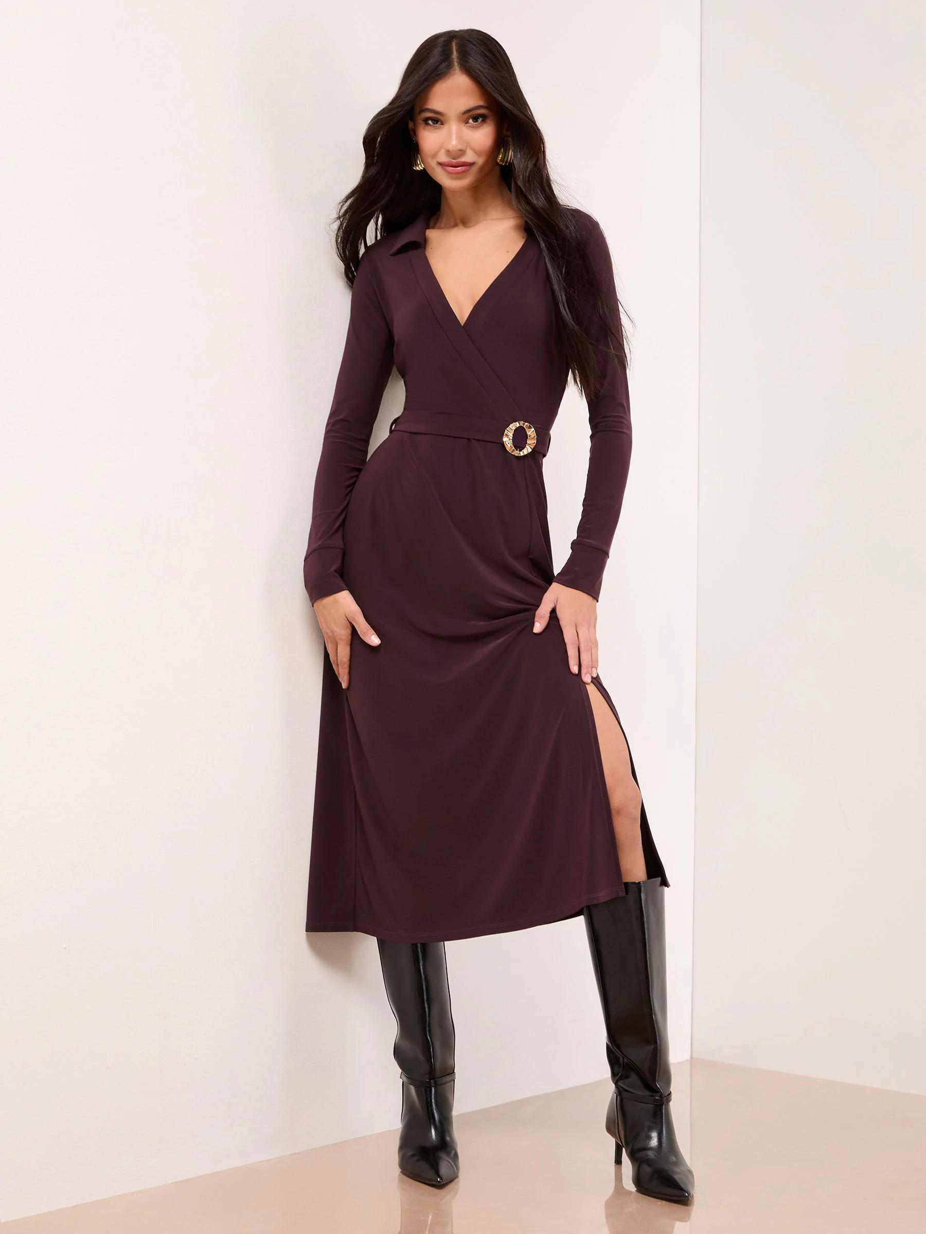 Lipsy Berry Red Animal Print Wrap Collared Jersey Midi Shirt Dress
