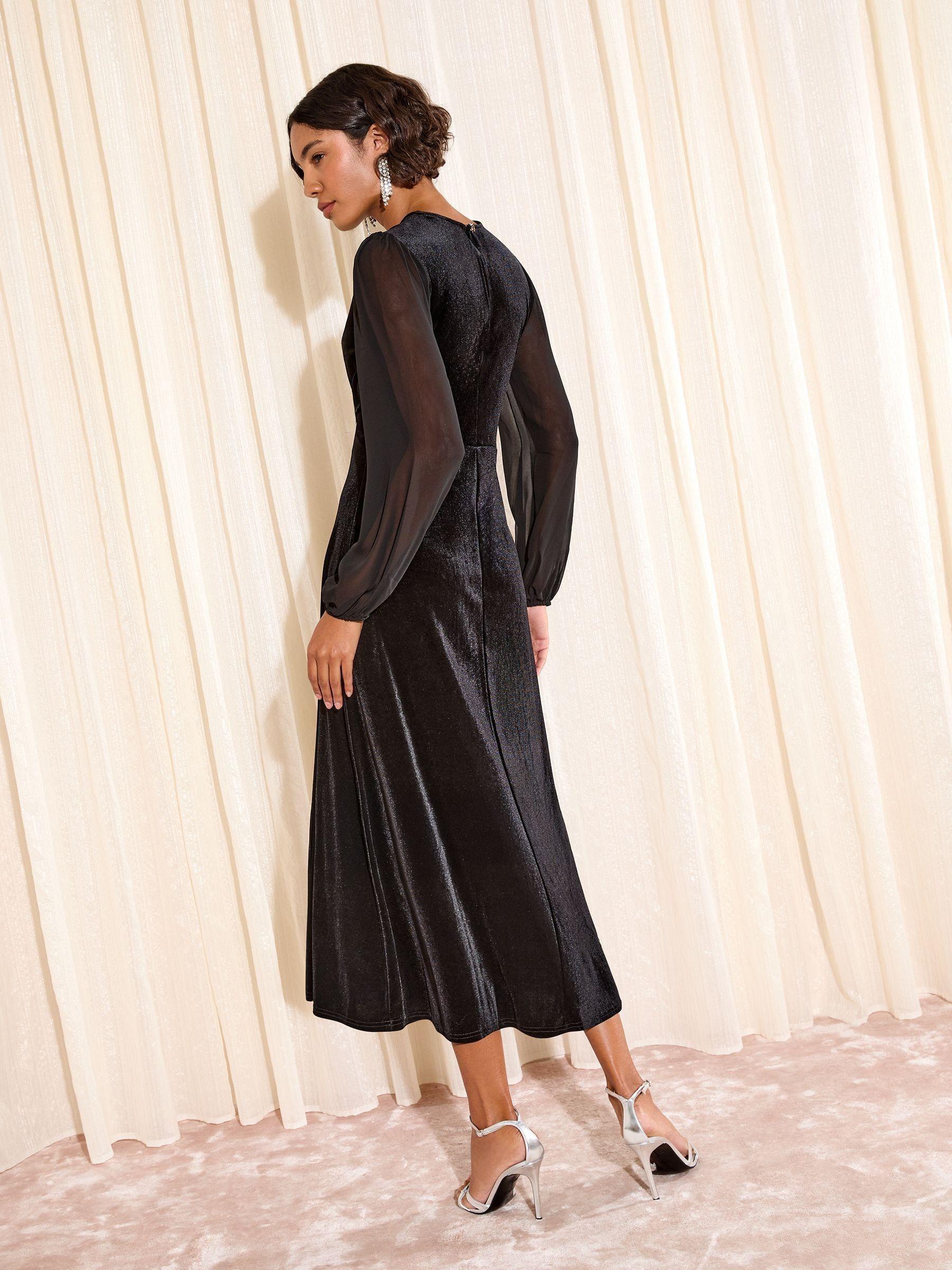 Friends Like These Black Velvet Chiffon Mix Midi Dress