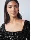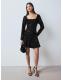 Black Square Neck Flippy Mini Sequin Dress