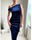 Style Cheat Blue Assymetric Midi Ruched Dress