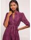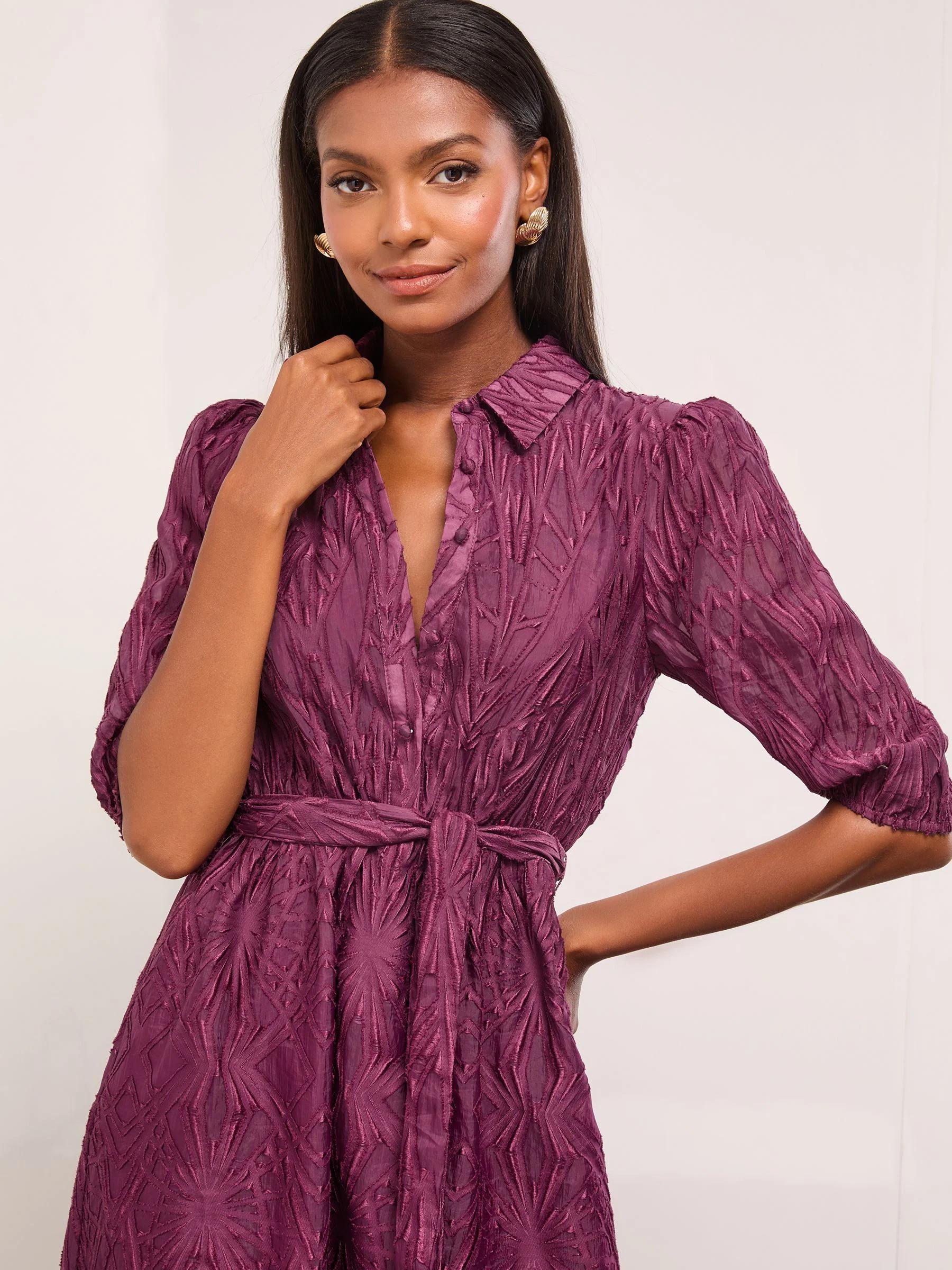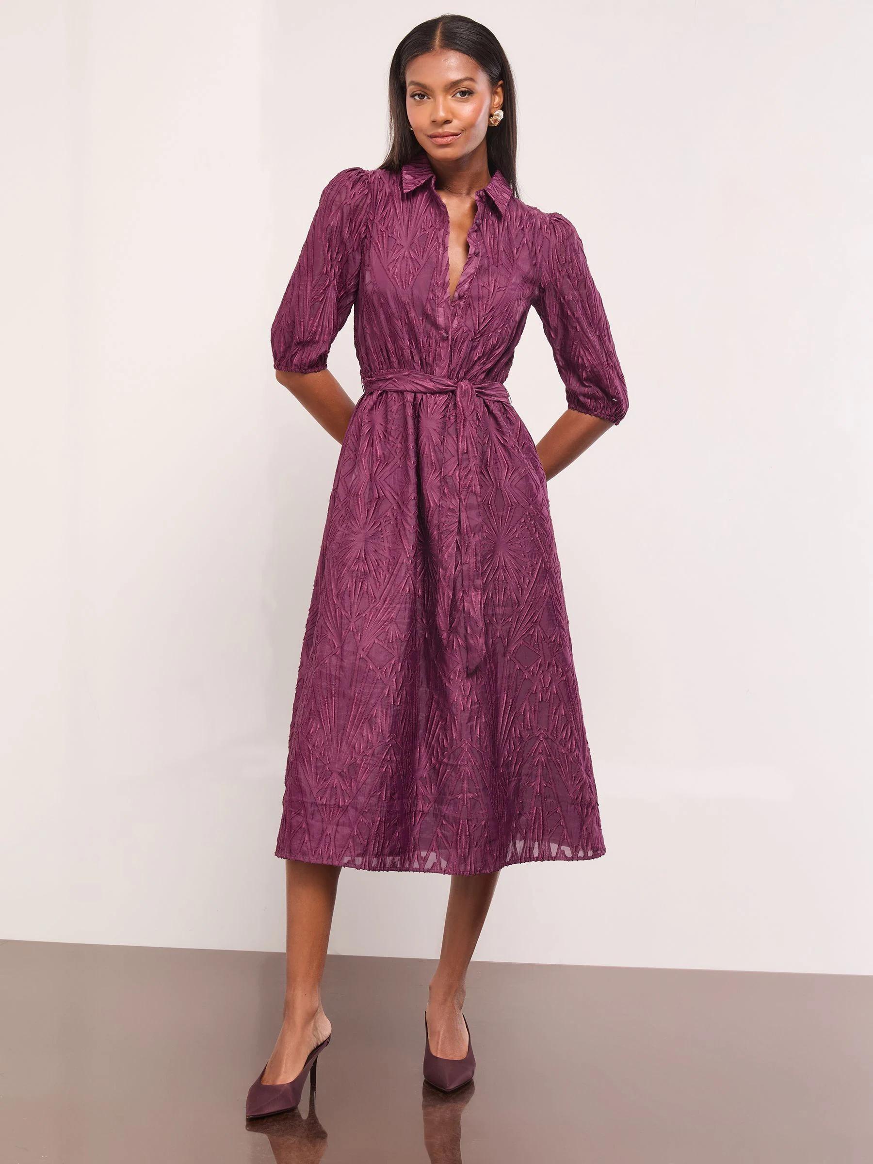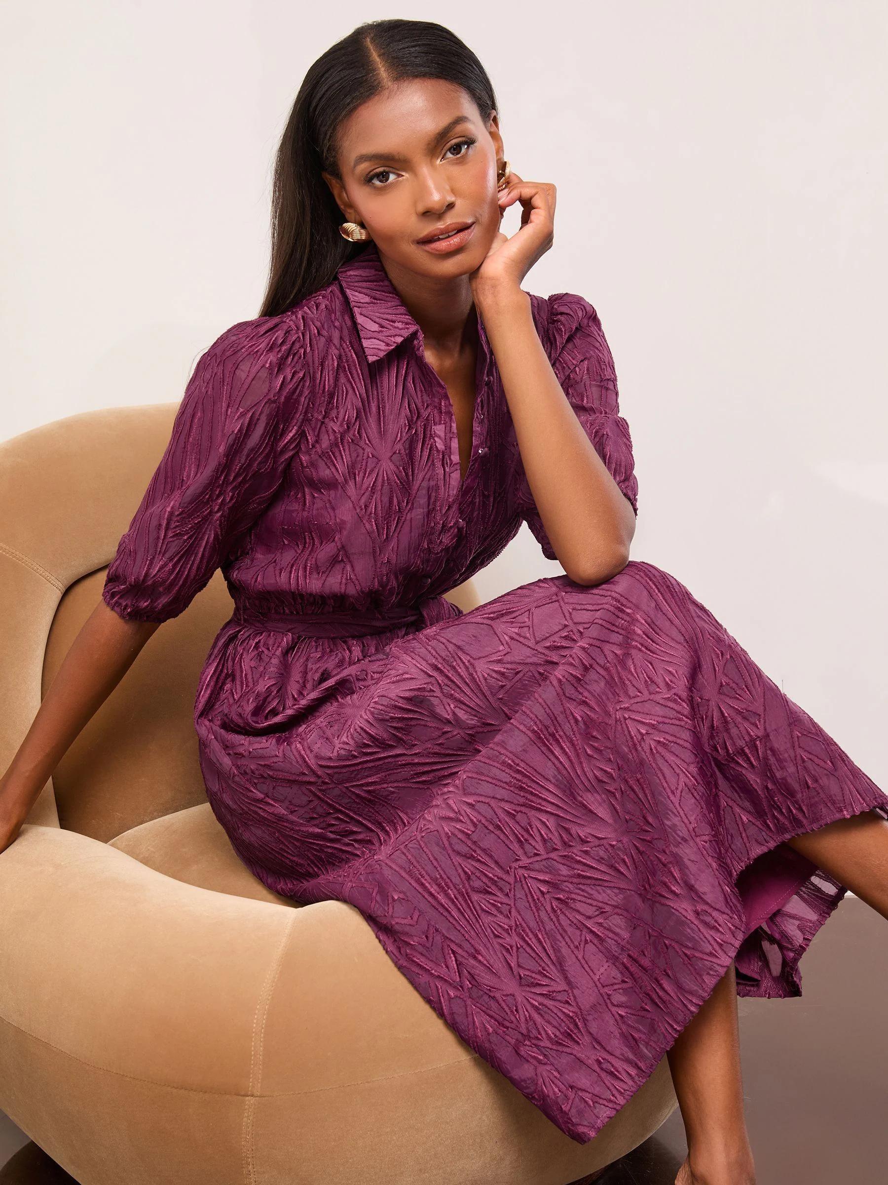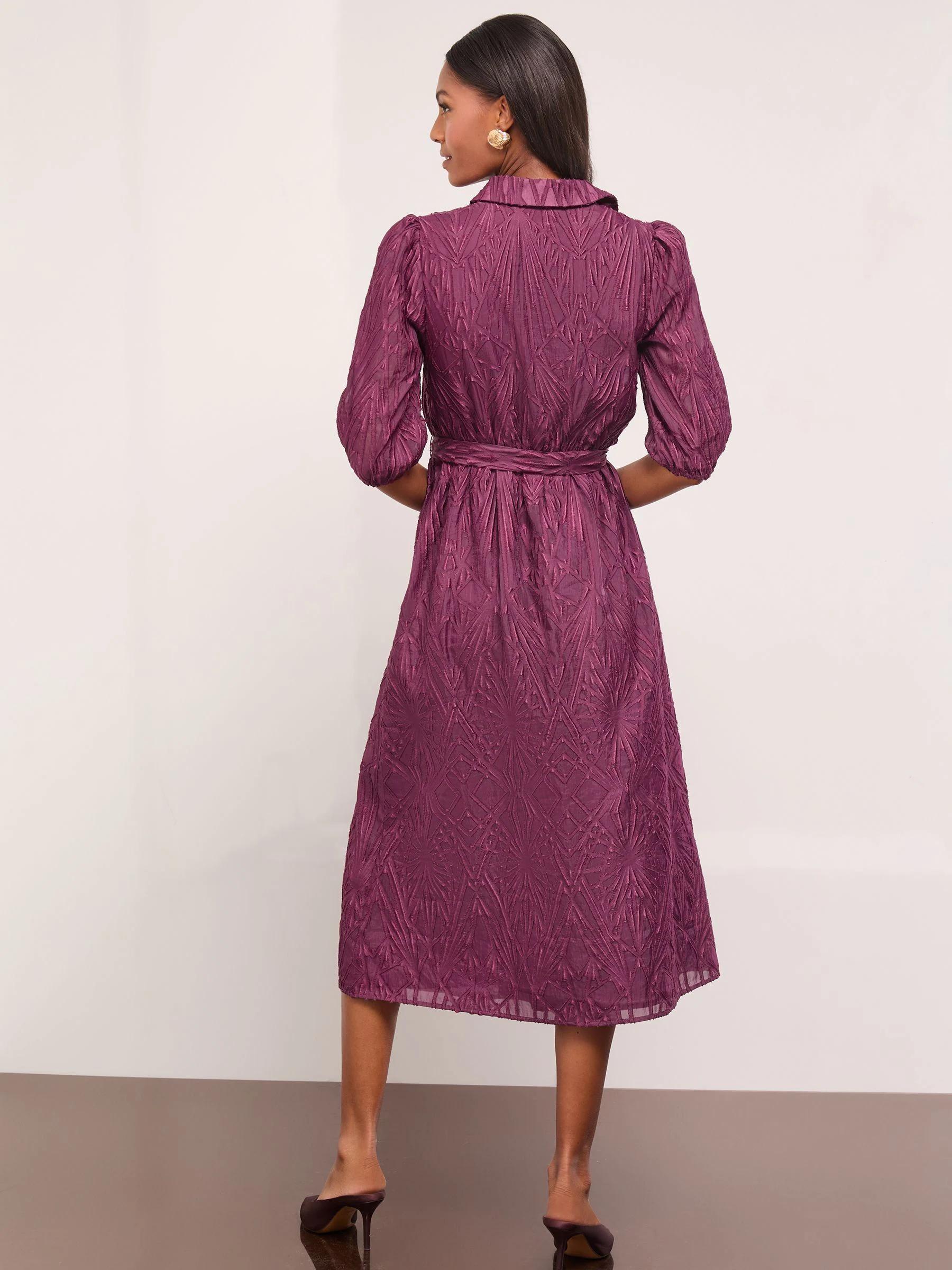 Lipsy Berry Red Petite Fit And Flare Textured 3/4 Sleeve Button Through Midi Shirt Dress