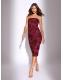 Lipsy Burgundy Red Sequin 3d Floral Textured Bandeau Bodycon Midi Dress