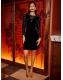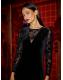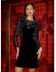 Yumi Black Fitted Velvet Dress With Sheer Floral Sleeves