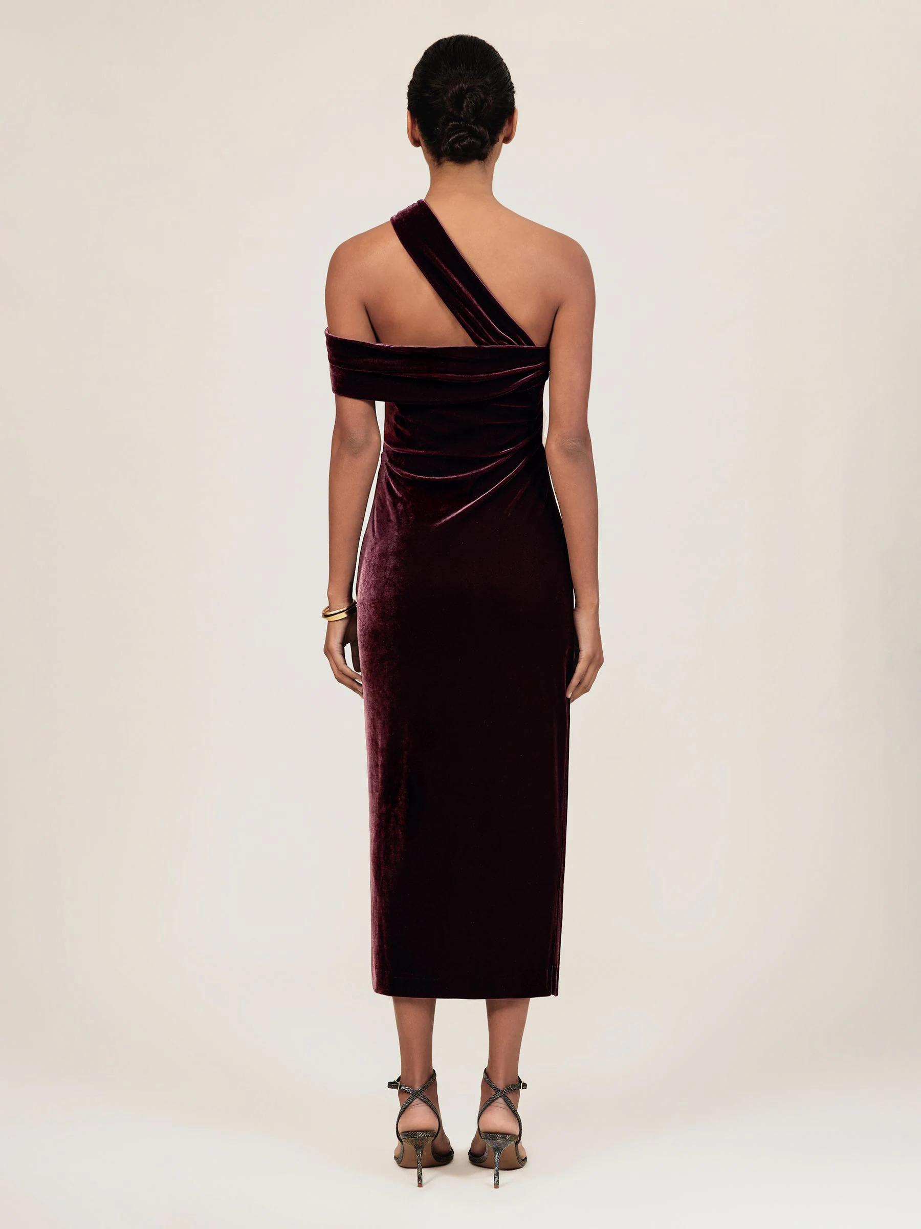 Reiss Burgundy Dalia Petite Velvet One-Shoulder Midi Dress
