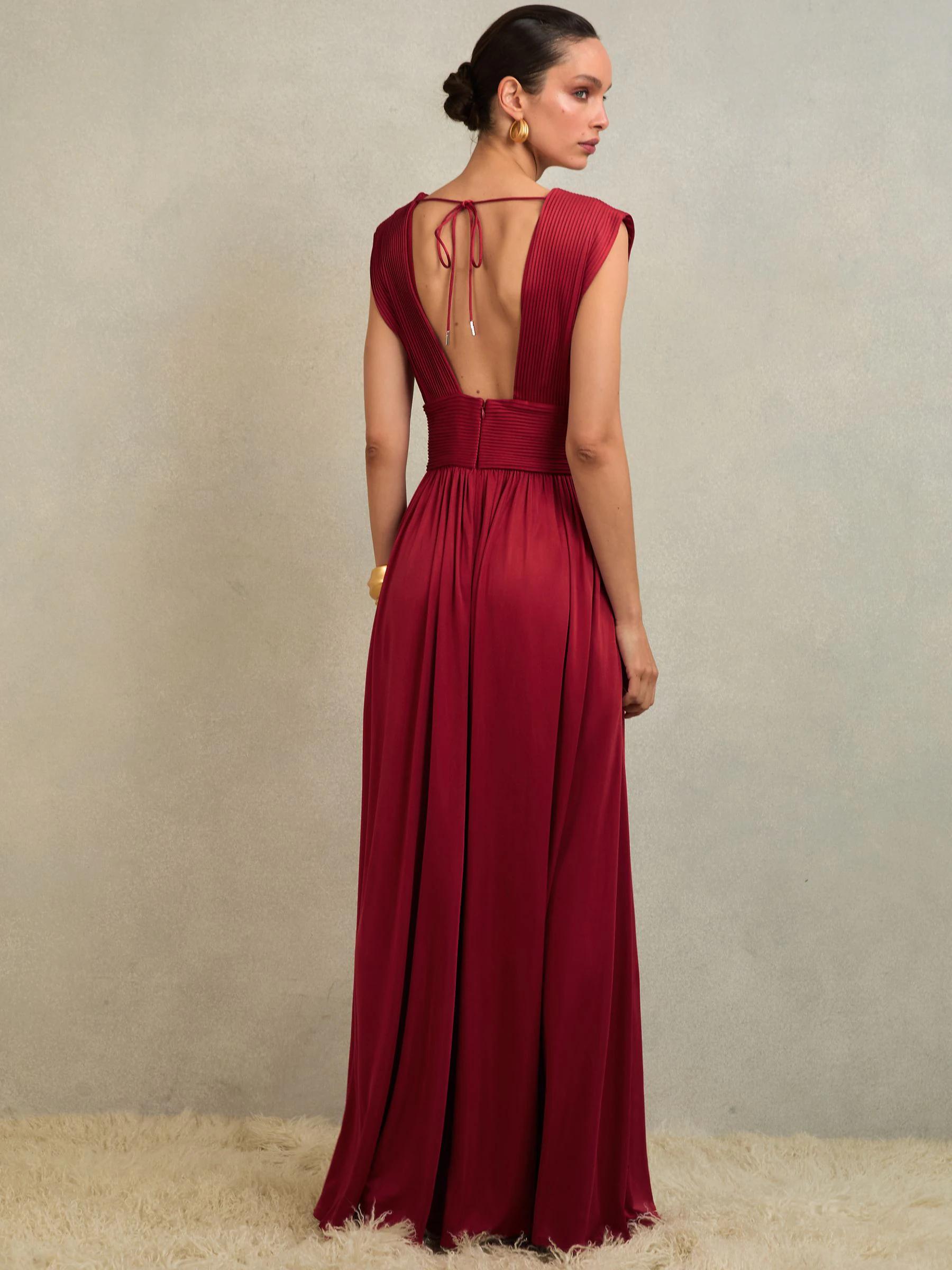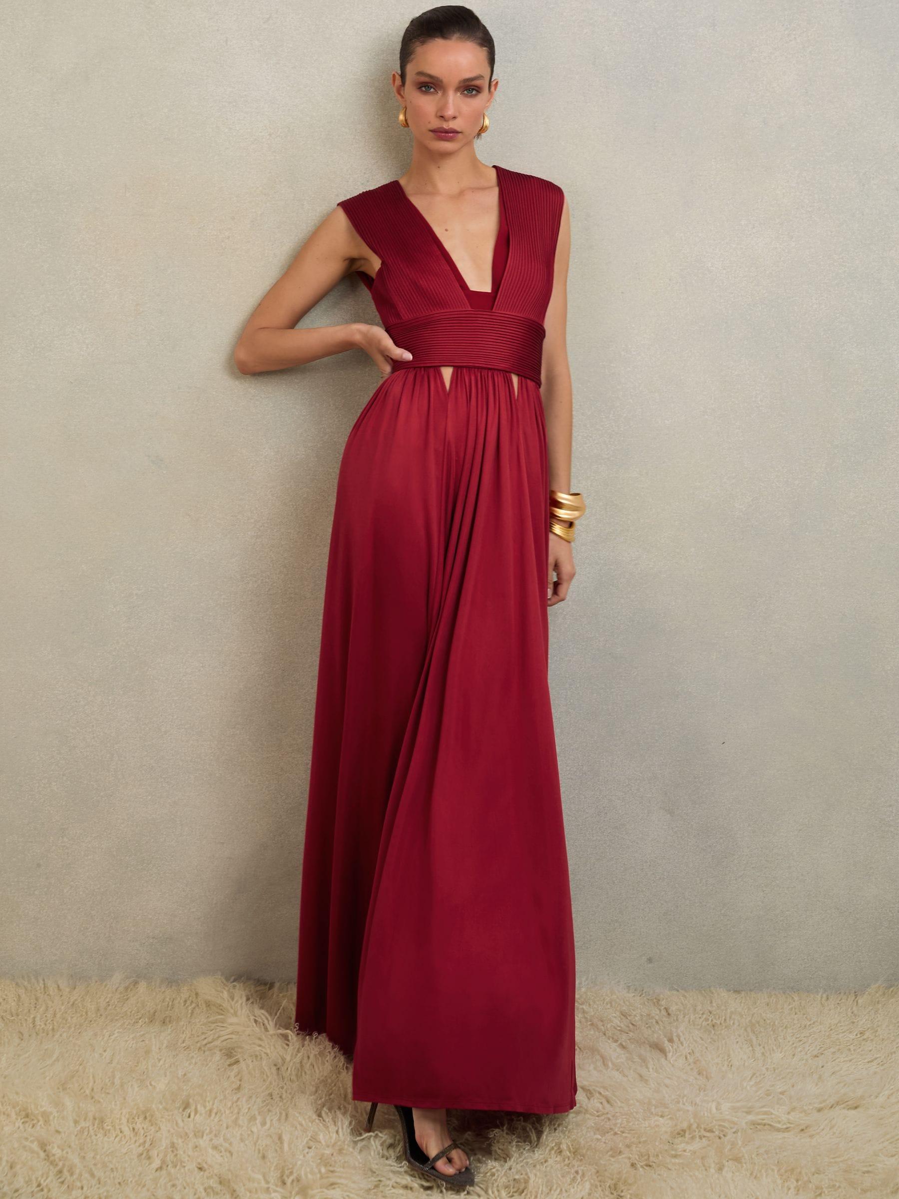 Atelier Red Jasmine Atelier Cut-Out Pleated Maxi Dress
