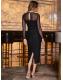 Sosandar Black Velvet Mesh Detail Midi Dress