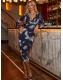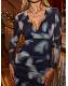 Sosandar Blue Abstract Print Ruched Midi Wrap Dress