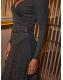 Sosandar Black Glitter Ruched Button Detail Fit & Flare Dress