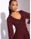 Lipsy Burgundy Red Fluffy Faux Fur Trim Cable Knitted Jumper